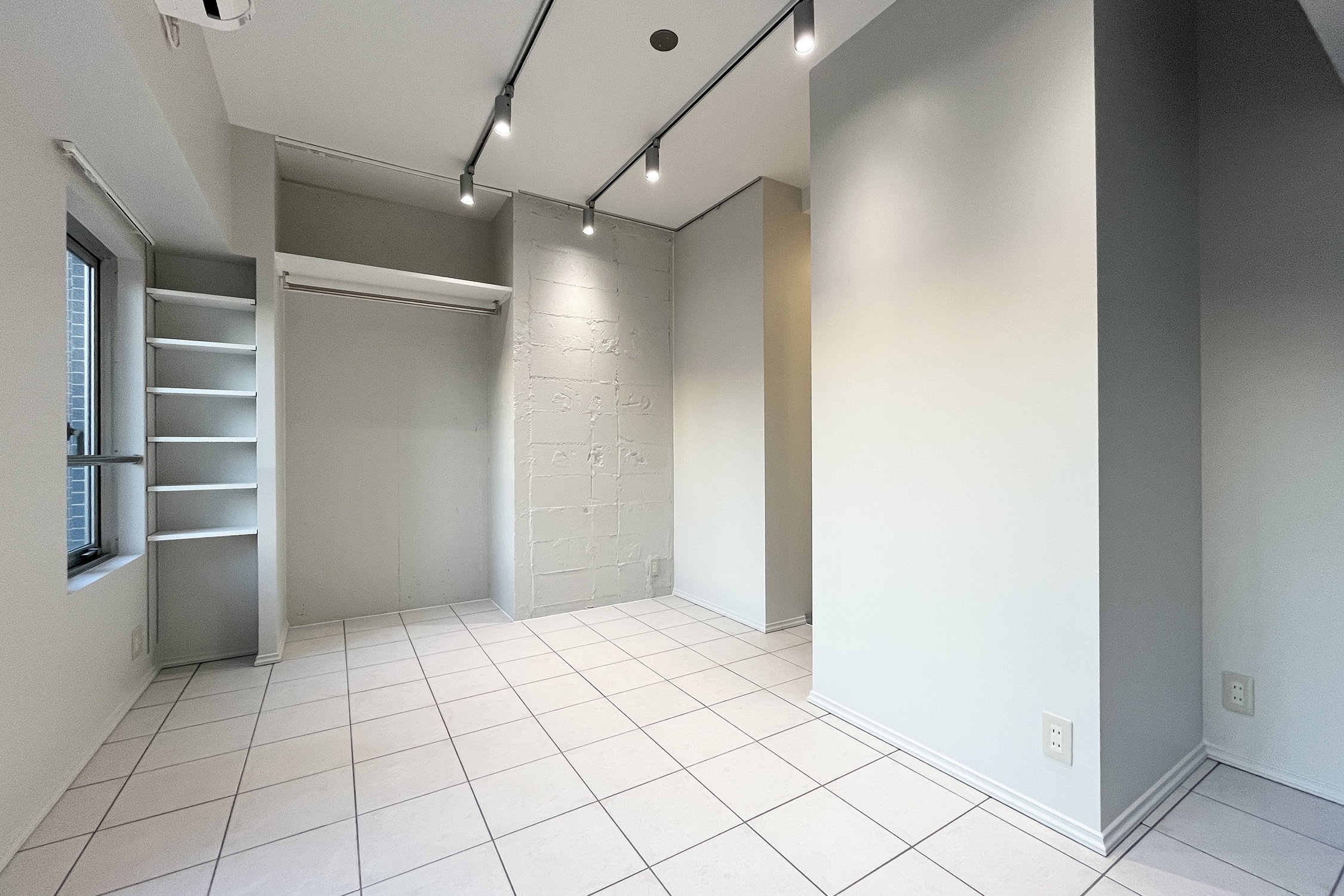 二面採光でとても明るいお部屋です♪ 夕方には西日が白いタイルに当たり、より柔らかく明るい雰囲気になります。 デスクがぴったり置けるスペースもあり、ちょっとした作業もしやすいのが嬉しいポイントです!
