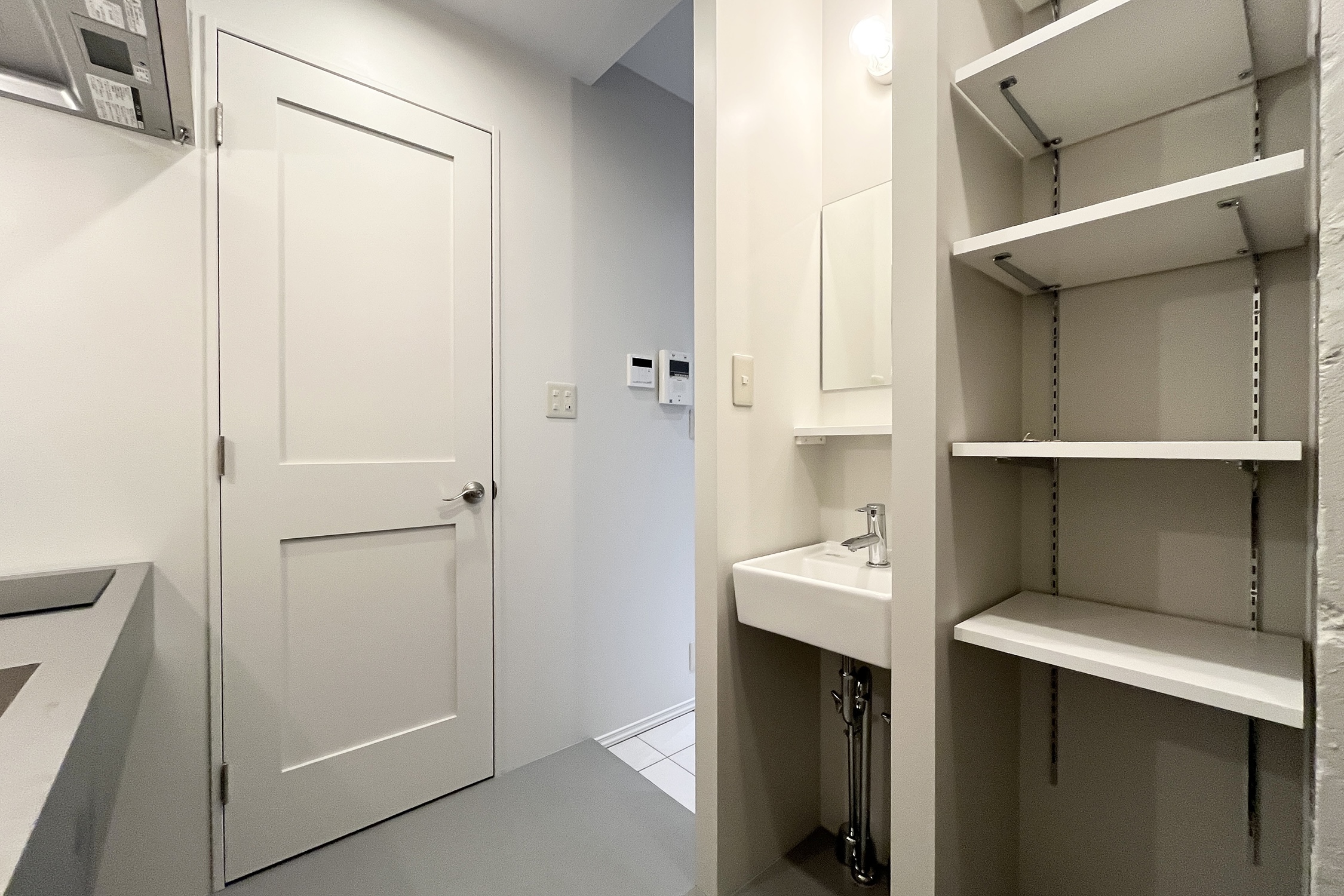 駒沢大学は、駒沢公園の開放感と落ち着いた住宅街が広がる住み心地の良いエリア。田園都市線で渋谷へ直通でアクセスも快適。個人店のカフェやベーカリーが並び、忙しい日々でも自然と生活のリズムを整えられる、心地よい街。そんな場所にすっきり真っ白な「blanc」シリーズがあります。お部屋を入るとすぐステンレスのクールなキッチンが見えてきます。シルバーの棚受けや配管×ペンダントライトでデザイン性の高い空間。右手の奥行きゆったり可動棚はシューズ以外もたくさん収納できちゃいます。洗面台は廊下取り付けでさっと手を洗えたり身だしなみチェックが可能。クランクを抜けて居室へ進むと2面彩光の明るいお部屋。躯体の白塗装で雰囲気のある壁面や白タイルが洗練された印象です。シャワーと壁を挟んで隣り合ったスペースにはデスクを置いたり、シェルフを置いたり。光が差し込む心地の良い空間でお部屋のお気に入りスポットになりそうな予感です。ゆったりコーヒーを飲んだり趣味に没頭したり、光に満ちた洗練部屋で暮らしてみませんか。