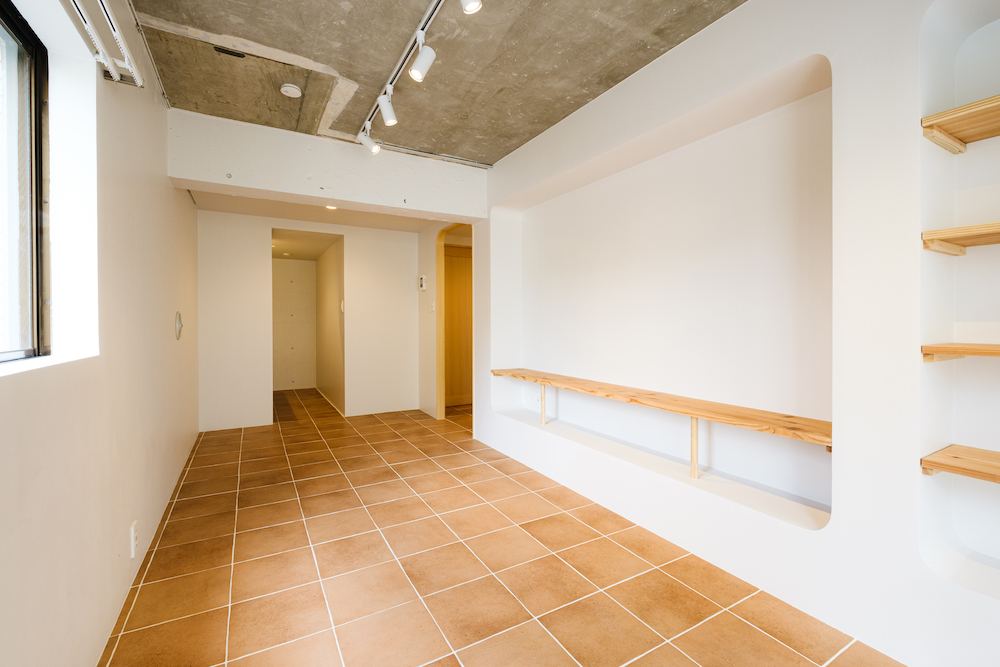 横須賀線や湘南新宿ラインなど、複数路線が使えて利便性の良い「西大井」駅。商店街や公園が多く、子供の遊ぶ声や散歩をする家族の姿など、穏やかな時間の流れを感じるエリアです。そんな駅から徒歩わずか3分の静かな環境にリノベーション賃貸「Boho」はあります。でこぼこ感が気持ちの良いテラコッタタイルを敷き詰めた居室は、2面採光で明るく、気持ちの良い風が通り抜けます。丸みのある縁取りが優しい印象のディスプレイスペースは、お気に入りの雑誌を並べたり、好きな花を飾ったり、思いつくままにアレンジして。ラウンドミラーのある洗面台や、アイアンバーのオープンクローゼットなど、朝の身支度が楽しくなる設備も嬉しいポイント。上品さの中に、コンクリートや杉板の無骨さを効かせた、どこか大らかな雰囲気のお部屋で、自分らしい暮らしを見つけてみてはいかがでしょうか。