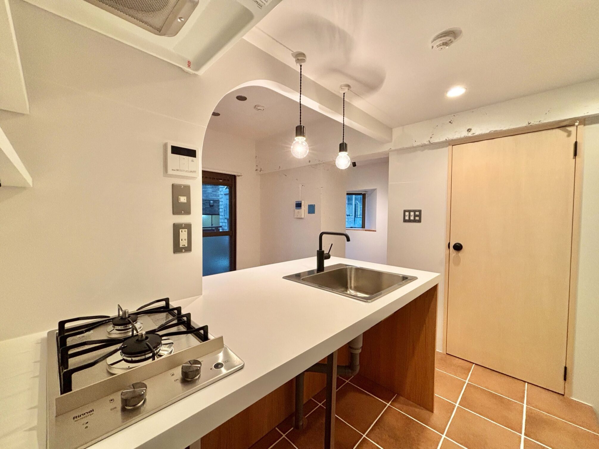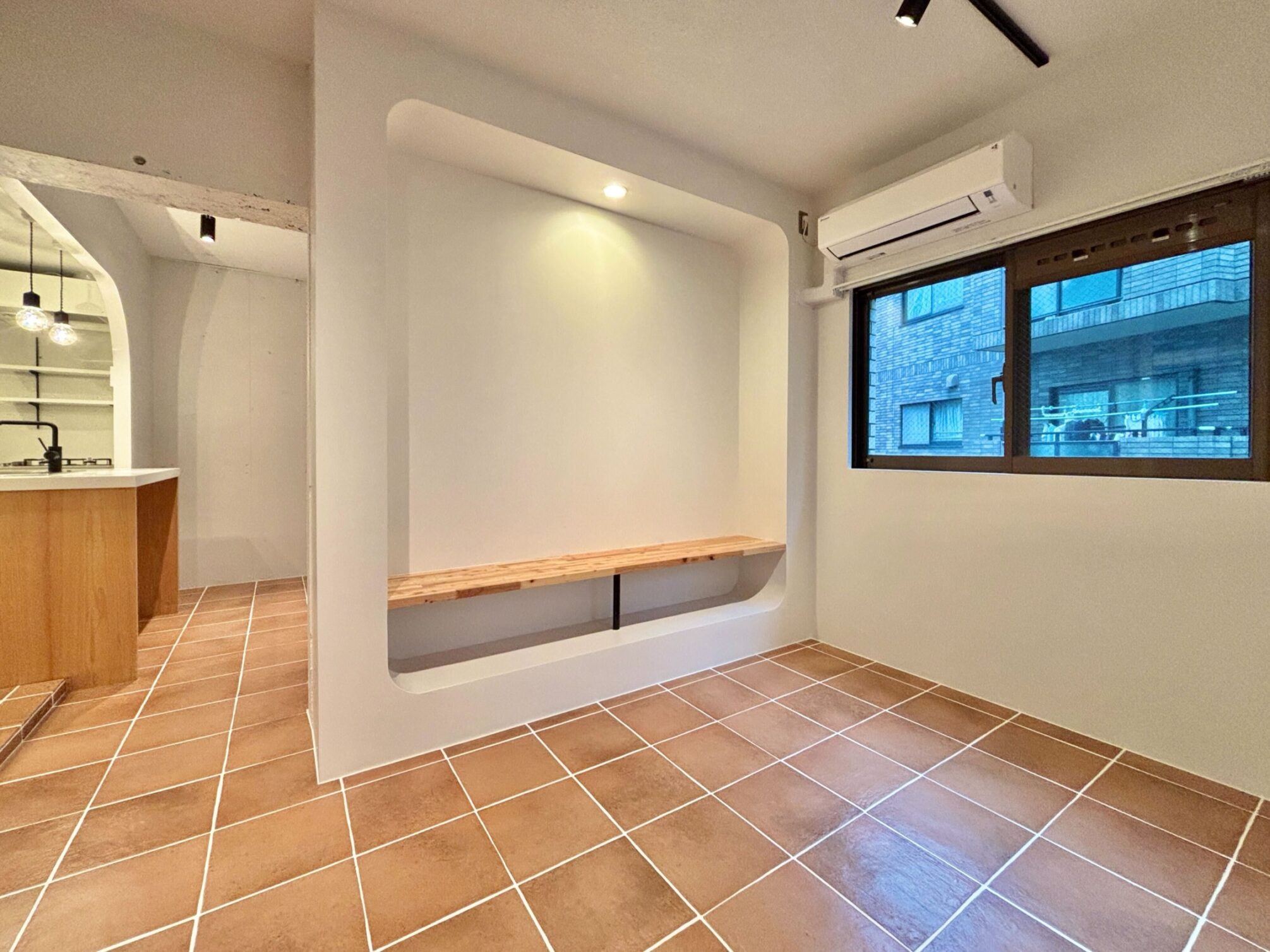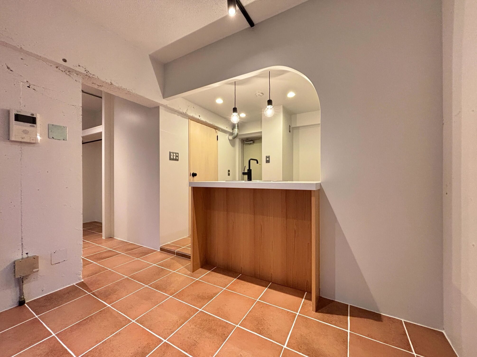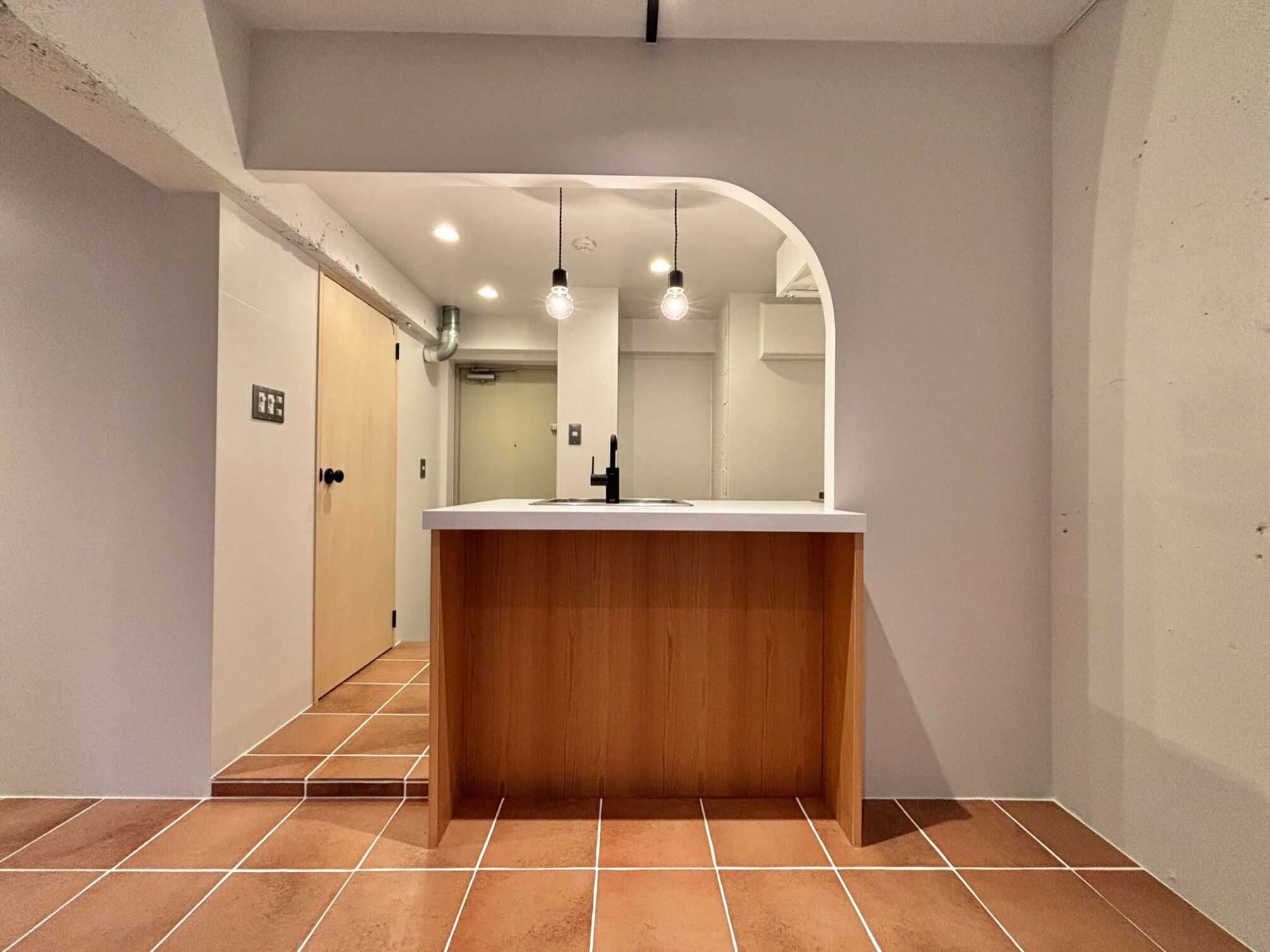 新宿や市ヶ谷へのアクセスが良く、ビジネスと生活利便性を兼ね備えた東新宿。飲食店やスーパーも充実し、利便性の高い住宅街が広がる一方で、明治通り沿いのカフェや公園なども点在し、都市生活と落ち着きの両立ができる。そんな街にギャラリーのようなディスプレイシェルフが主役の「Boho」シリーズがあります。キッチンはカウンタースタイルでアーチの開口がポイント。友達を招いてカウンターに座ってもらい、クラフトビールやワインで乾杯したくなる空間です。丸鏡がポイントの洗面はゆったりサイズ感。両脇にカウンターを設けて使い勝手も抜群です。居室は壊せない壁を生かしてダイニングとリビング・ベッドスペースをゾーニング。お部屋の主役となるディスプレイシェルフには、大きなアートポスターを置いてもよし、TV台やプロジェクターを映す場所として活用するのもおすすめ。友達に自慢したくなるような暮らしをはじめてみませんか。