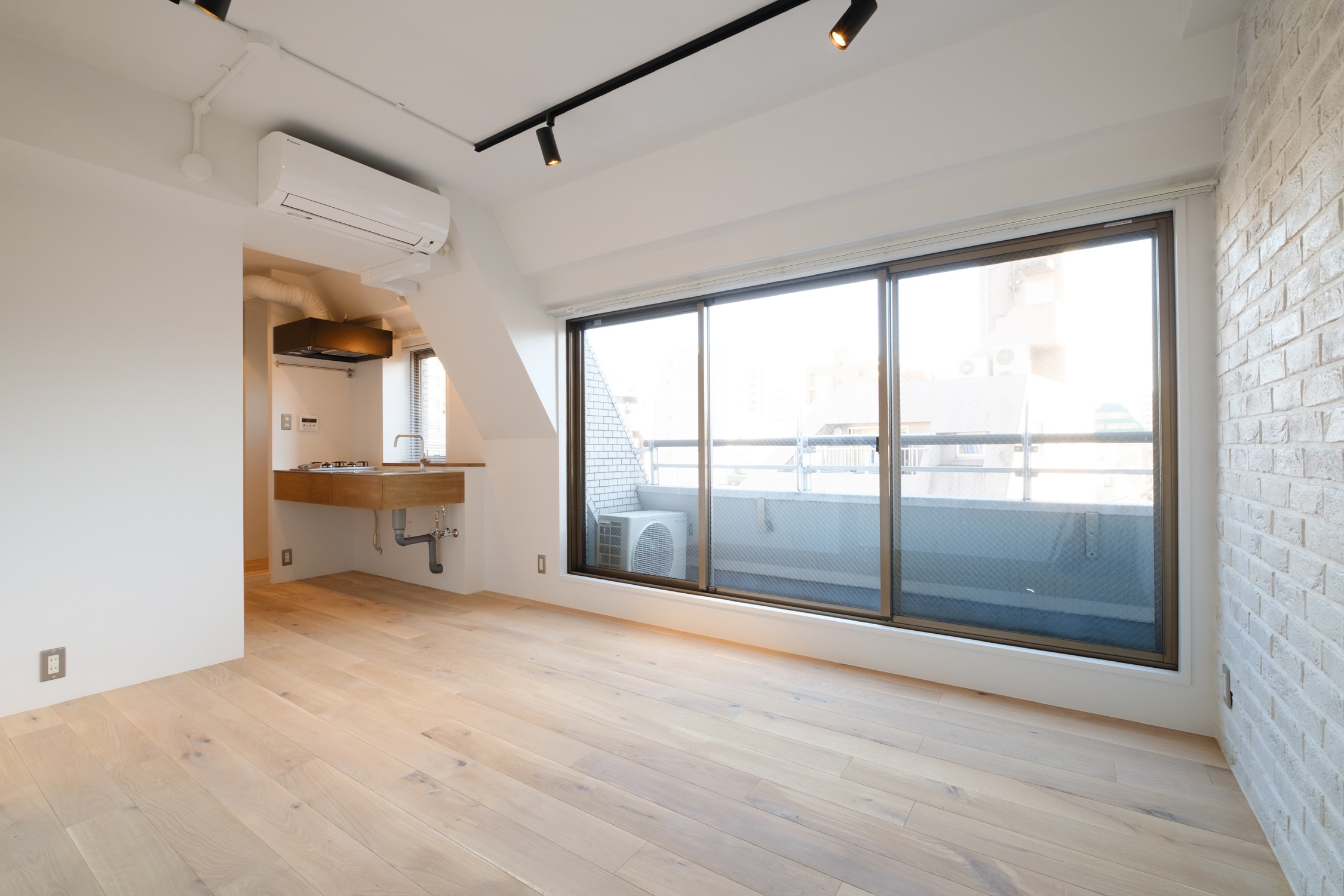 御茶ノ水エリアでBrickシリーズが完成しました。白やベージュで統一したシンプルなお部屋は、大きな窓越しの景色が開放的で、畳数以上に広さを感じます!ブリックタイルやオークの無垢床は白塗装でヴィンテージ感のある仕上がりに。照明器具のブラックをアクセントにしています。是非、現地で確かめてみてください。