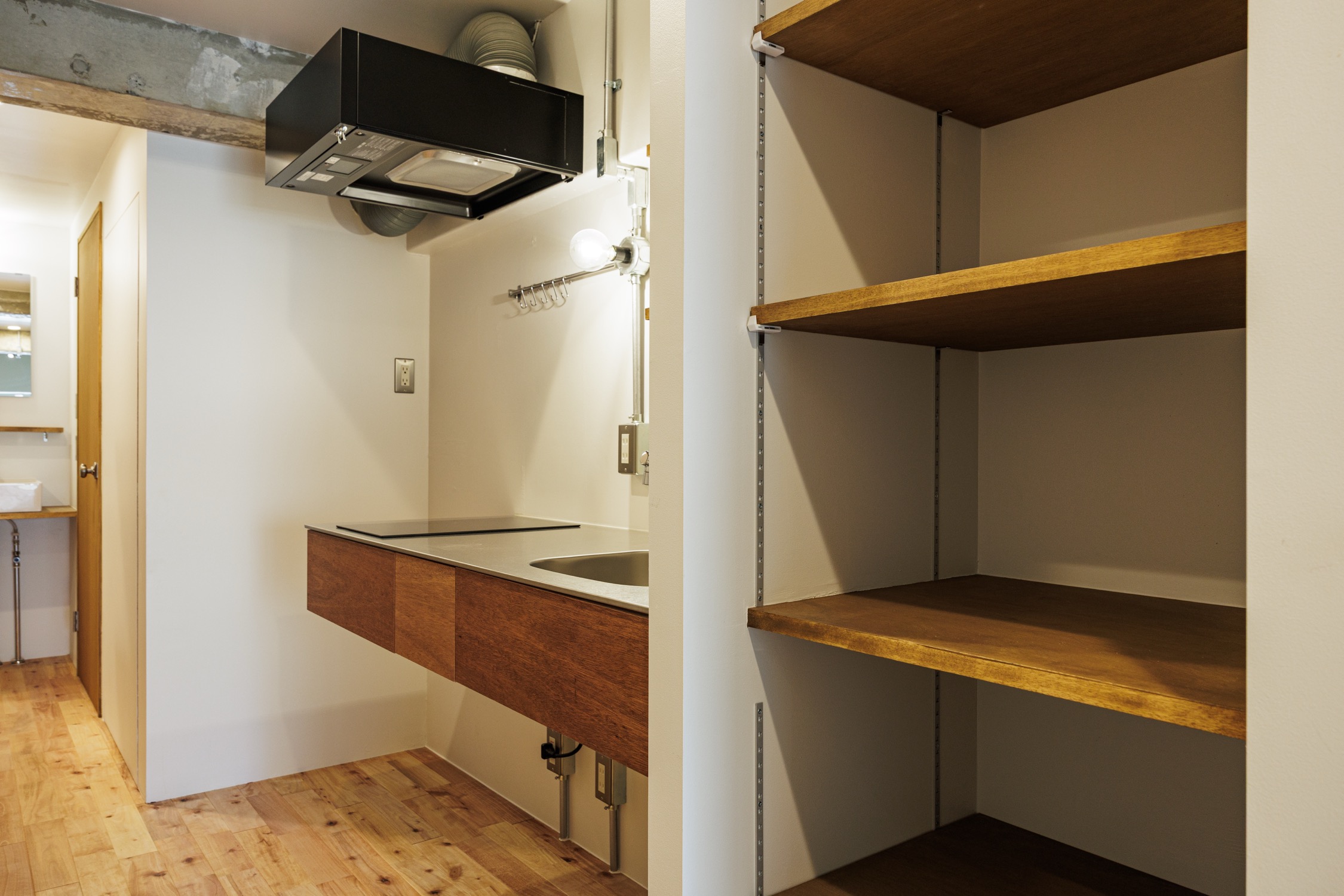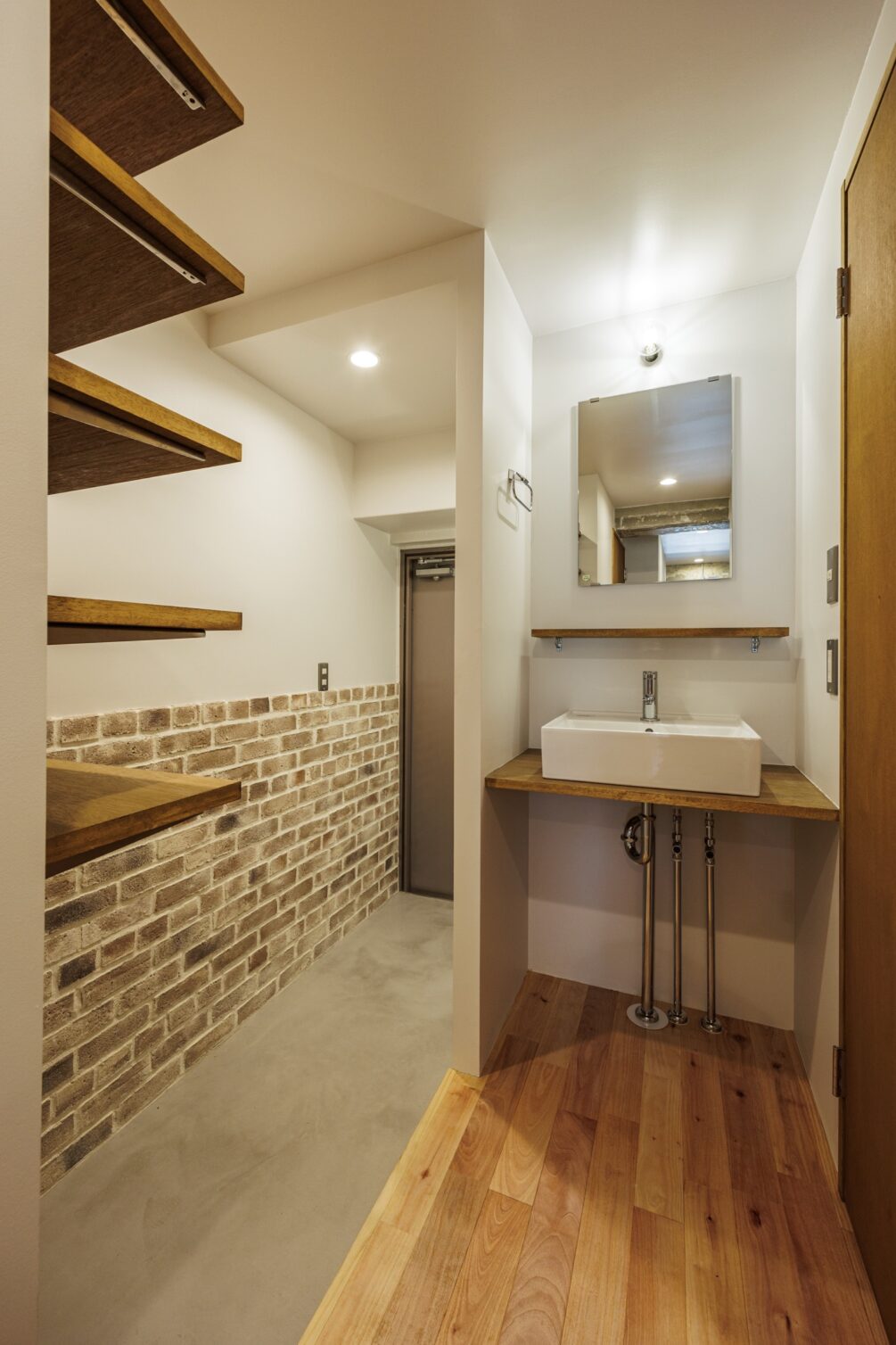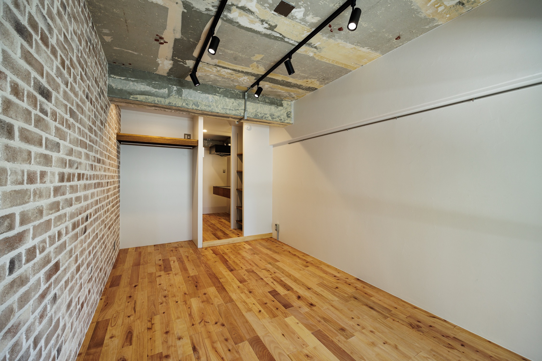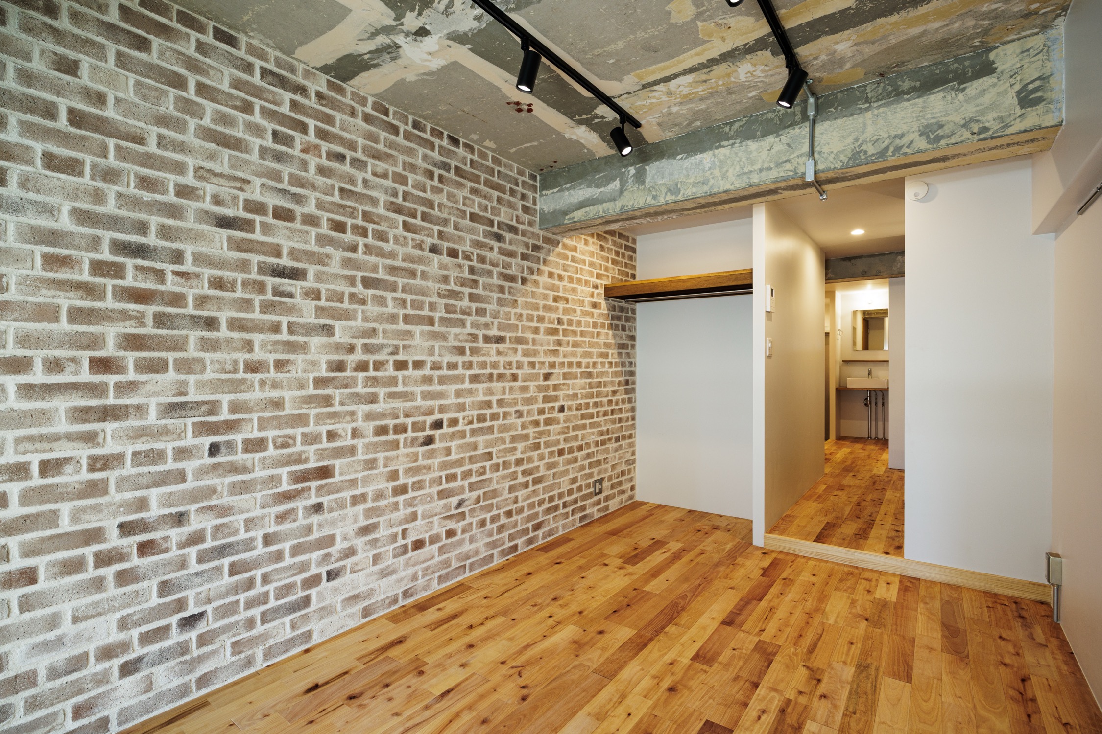 隅田川沿いの開放感ある景色や文化施設も豊富な両国。下町情緒と都会の利便性をあわせ持つ暮らしやすい街に「Brick」シリーズがあります。扉を開けてすぐ見えてくるのは優しいベージュのブリックタイル。ブラケットライトで照らされた固定棚は、鍵やアクセサリーなどを置いたり、ディスプレイシェルフとして使ったり。玄関入って正面には可動棚を設け、お手持ちのシューズもたっぷり収納できます。独立洗面台はカウンター付きでちょっとしたスキンケアアイテムなどを置ける使用に。帰ってきてすぐ手が洗えるのも嬉しいポイントです。廊下を進むと壁付けのキッチンが見えてきます。シンプルで使いやすいキッチンは、廊下に面していることでニオイが気になりにくいのが特長。キッチン横の棚はパントリー的に使ってもよし、日用品を収納してもよし。可動式で自由自在に動かすことが出来ます。居室の壁一面に貼られたブリックタイルはまるでスタジオのような雰囲気。お部屋で過ごしている時もカフェにいるような気分が楽しめそうな空間です。
