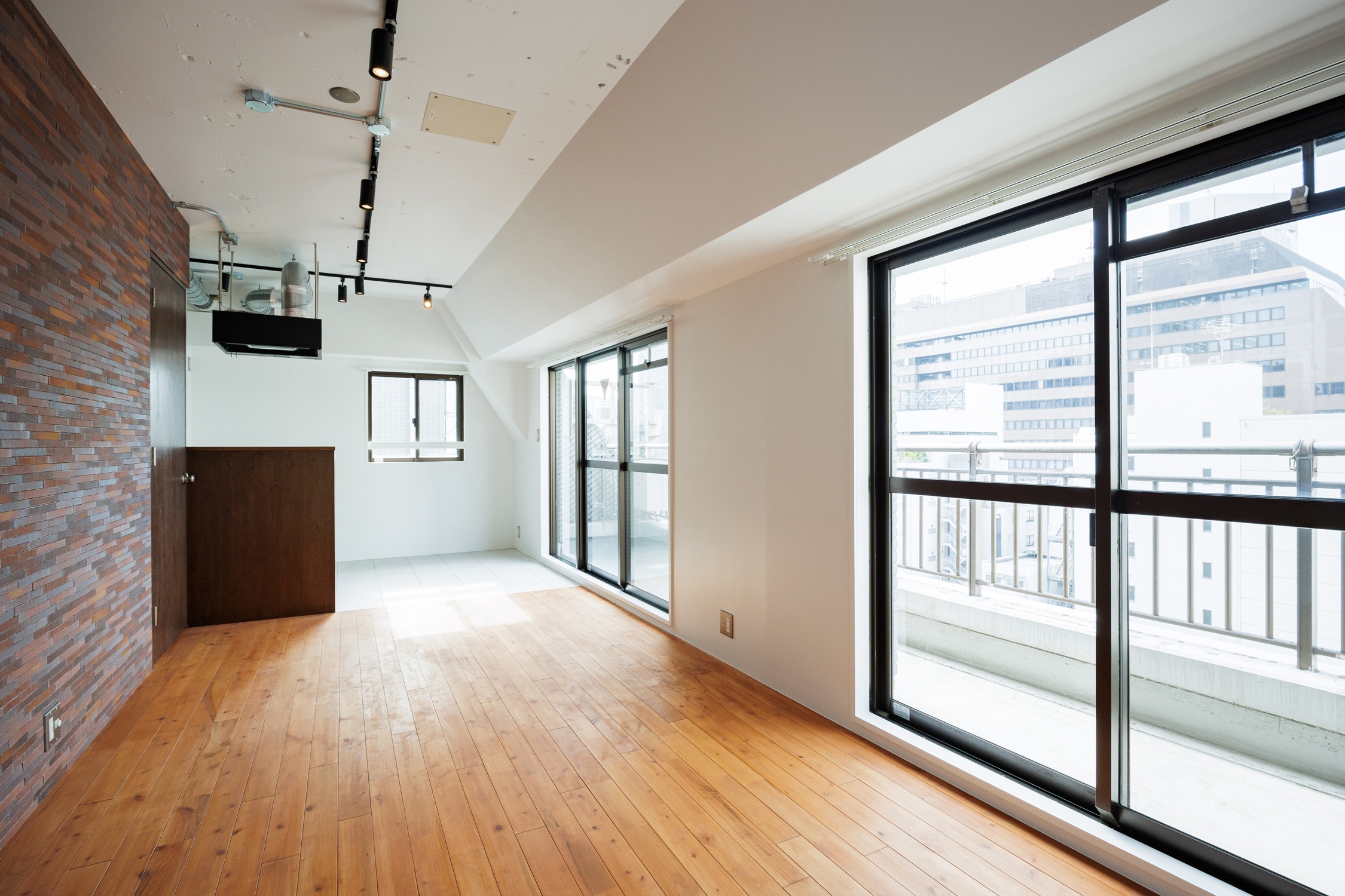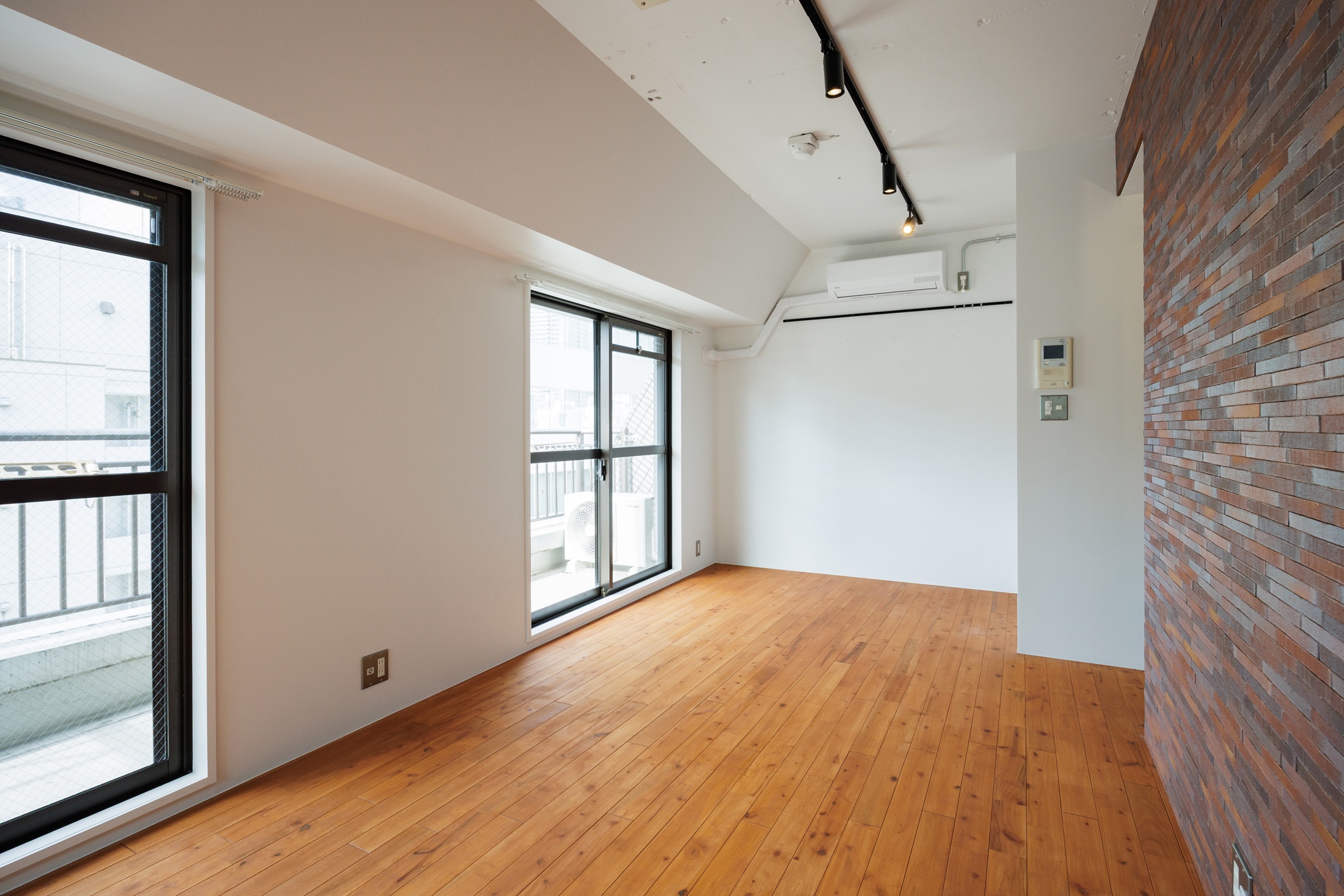 居室からひょっこり現れる東京タワー。夜はライトアップが近くて胸が高鳴る!最上階ということもあり、日中には暖かい陽射しが入り、赤茶のブリックタイルが映えるお部屋です。