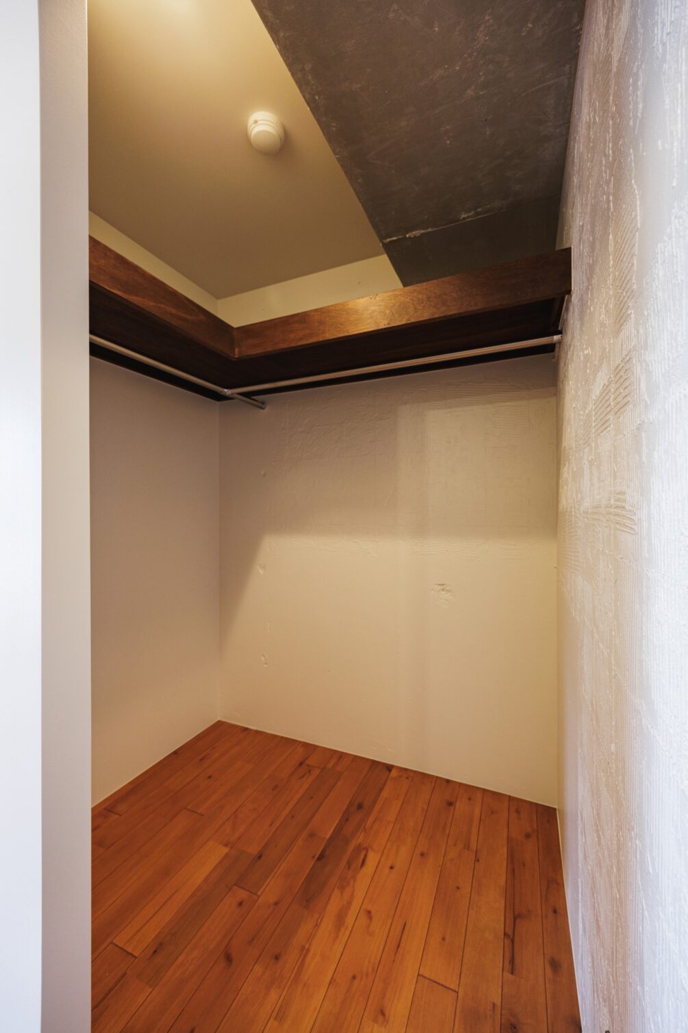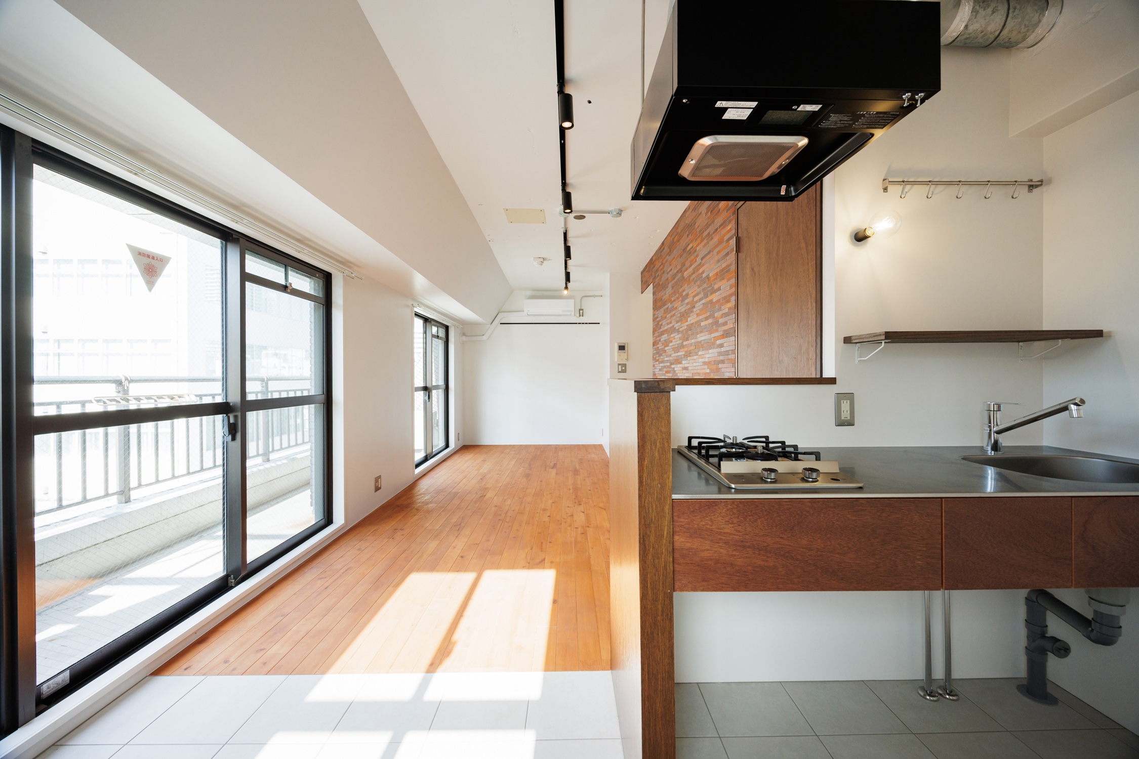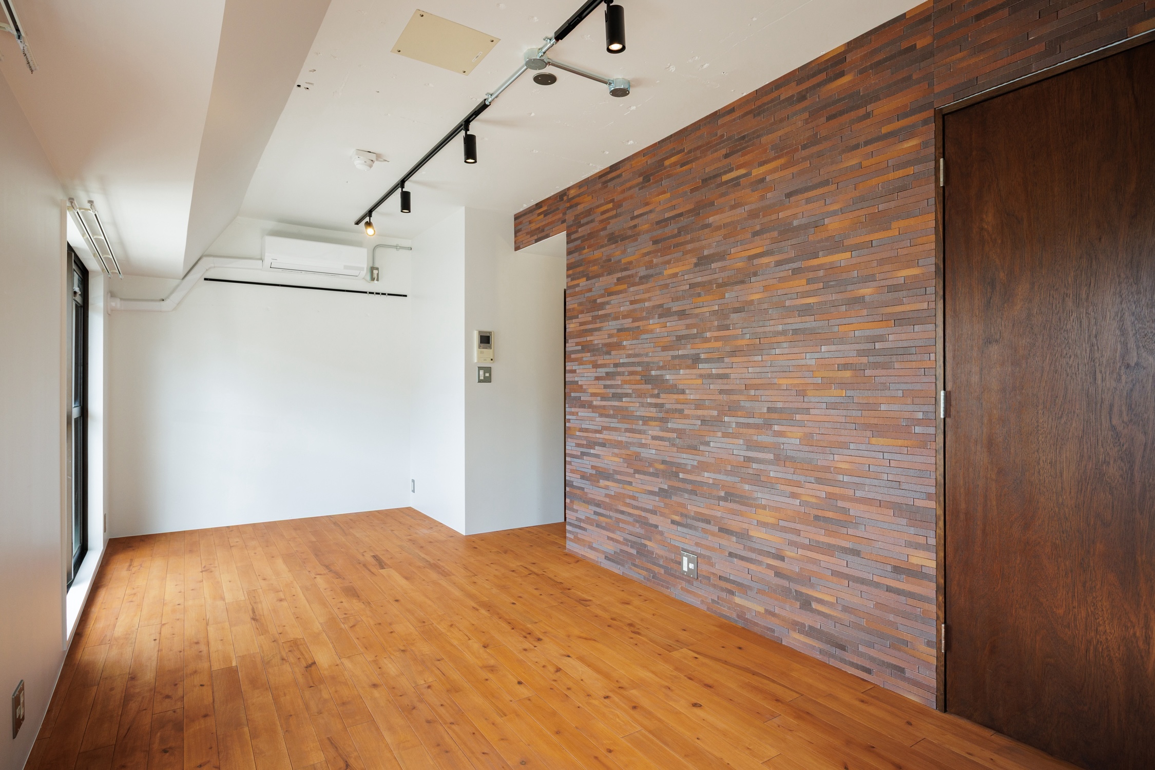 大門は、都心の利便性と落ち着いた雰囲気を両立したバランスの良い街。オフィス街ながら飲食店が豊富で、日常の外食にも困らない。芝公園や増上寺の緑も近く、都会の中でリラックスできる環境が魅力のエリアに「Brick」シリーズがあります。シリーズの中では珍しい細長タイプのブリックタイルを採用。居室に入ると真っ先に目に飛び込んできます。棚には靴を収納したり、時計やアクセサリーなどを並べてみたり。可動式なのも使い勝手が良さそうです。クローゼットはウォークインタイプの大容量。ごちゃっとしがちなスペースなので居室から見えづらいのも嬉しいポイント。居室に入ると3面彩光の明るいお部屋がお出迎え。たっぷり日の差し込む気持ちの良いお部屋です。振り返ると赤茶系で落ち着いた雰囲気のブリックタイル。よくみるとさまざまな色味が混じり合っていて、程よいラフ感を演出してくれています。キッチンは居室奥に設置し、床面もタイルに張り替えることで緩やかにゾーニング。光に包まれた気持ちの良いお部屋で暮らしの質も上がりそうな予感です。