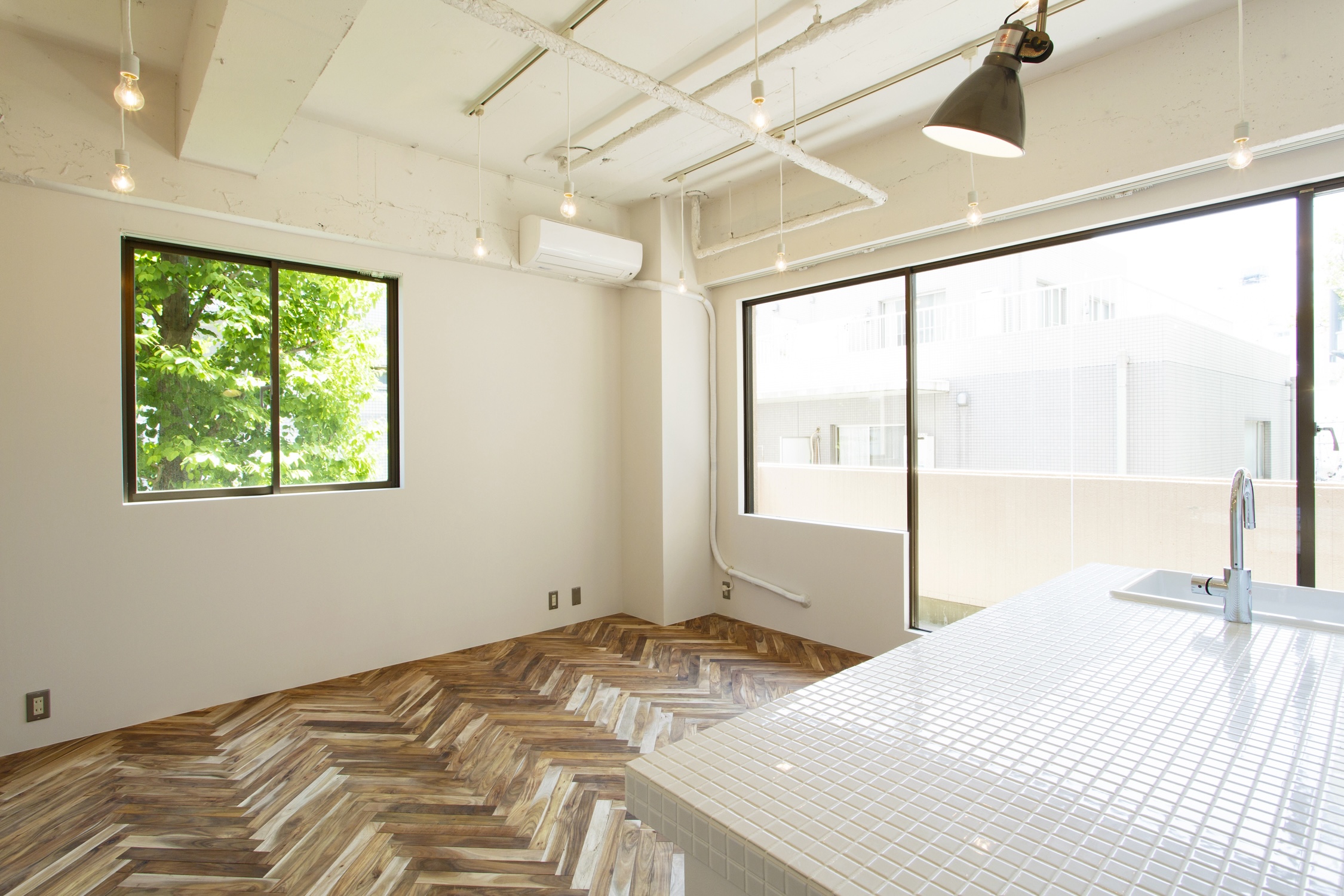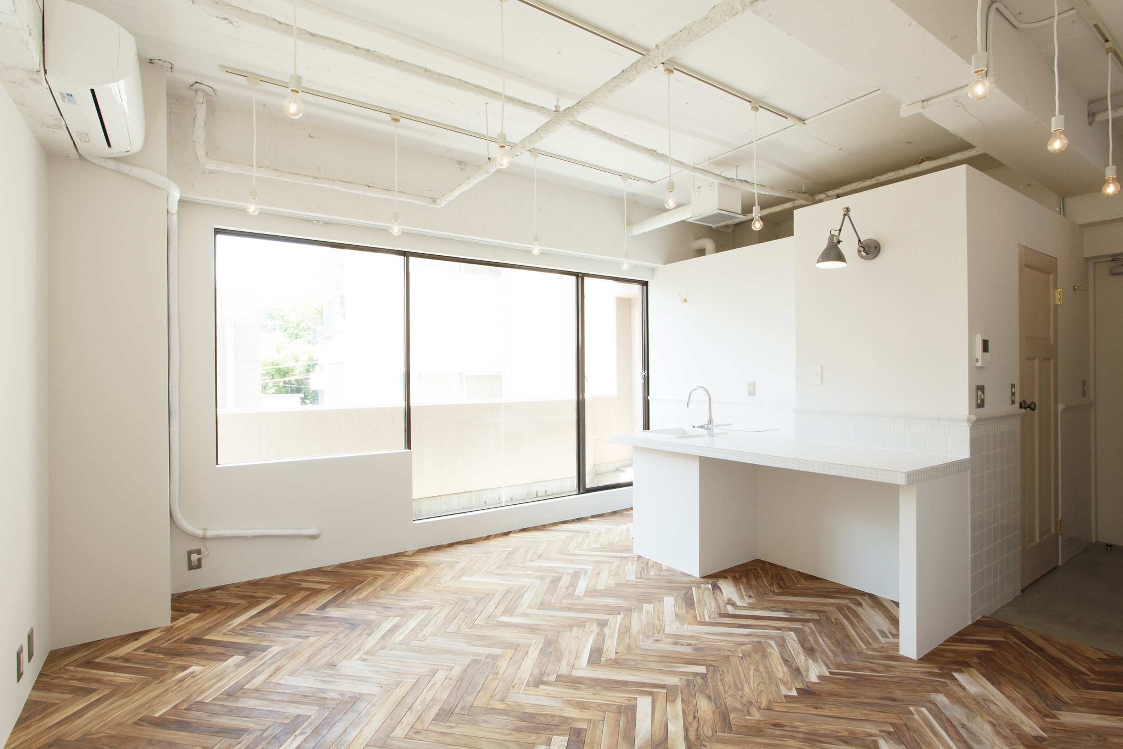 ハイセンスなショップやカフェが集まり、緑豊かな外苑まで徒歩圏内という、プレミア感満載の「千駄ヶ谷」。そんな「千駄ヶ谷」駅から徒歩わずか2分という好立地にある、リノベーション賃貸「Chic」。3m近くある天井と壁一面の大きなハイサッシが創出する抜群の開放感に加え、室内に広がるヘリンボーンフロアと装飾タイルが演出するクラシカルな上品さは、訪れる人に優雅な印象を与えてくれます。キッチン前のアンティークな雰囲気漂うブラケットライトや、天井から下がるペンダントライトの灯に気分高まるデザイン。スペースを最大限に確保した空間が自由な発想を生み出し、楽しい時間と充実した生活を提供してくれること間違いなしです。