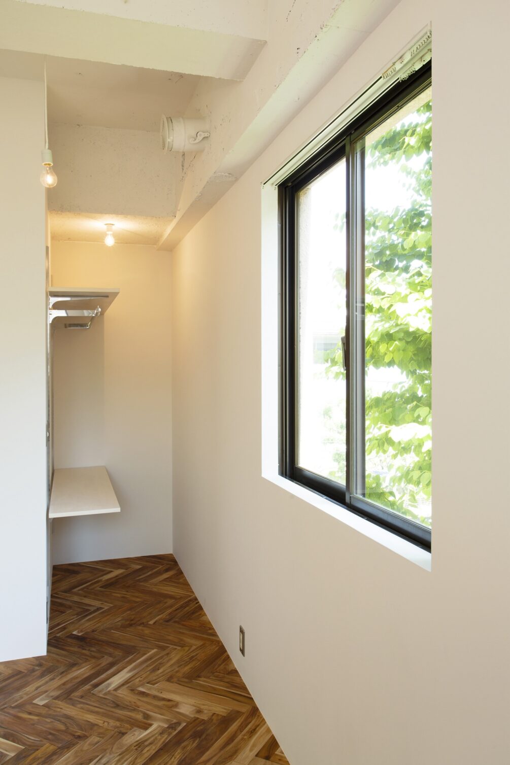 窓から見える緑が印象的!ヘリンボーン張りの床やペンダントライト 、タイルを使ったキッチン天板など、細部までこだわった絵になるお部屋です♪