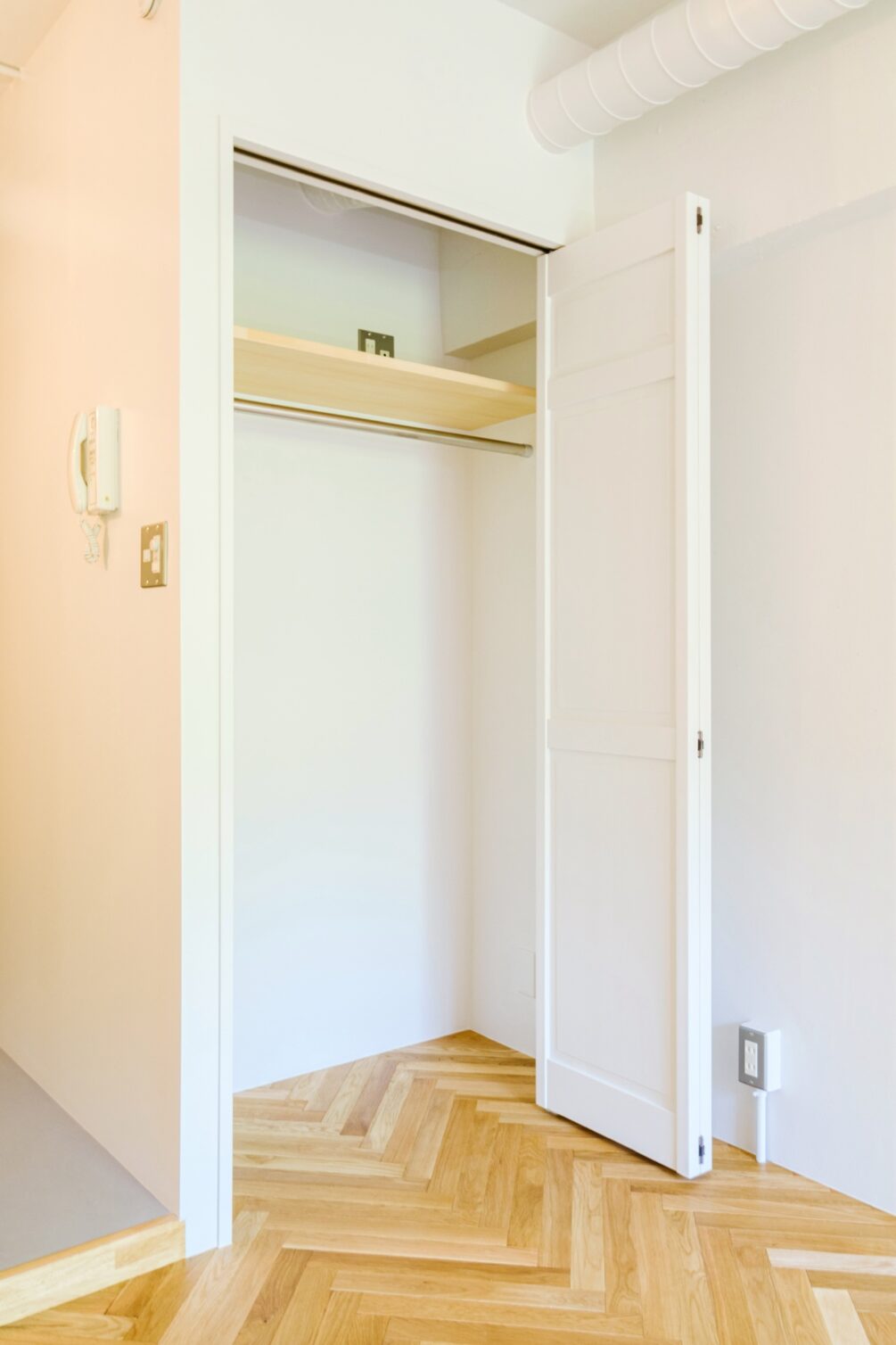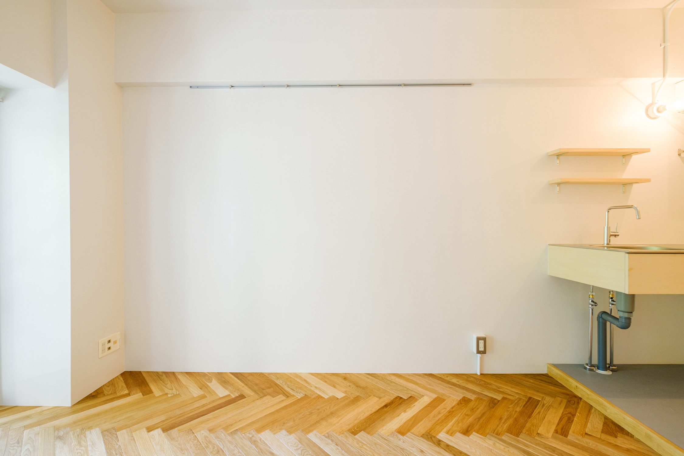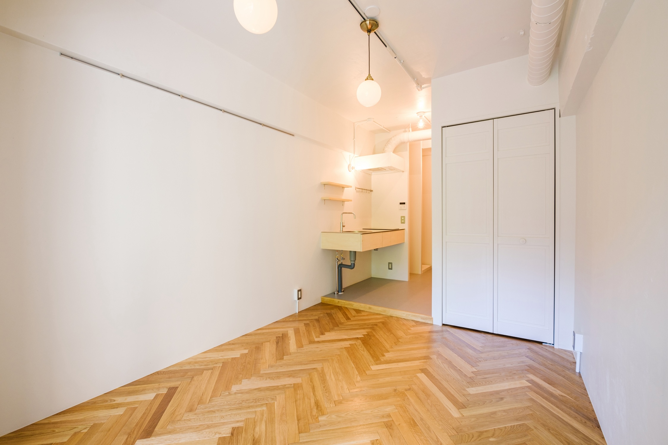 江戸川橋エリアにChicシリーズのお部屋が完成しました。白塗装の壁と天井にヘリンボーンの無垢床の飴色が映える室内は、どんなインテリアも品良く見せてくれそうです。扉付きのクローゼットや、冷蔵庫・洗濯機を仕切る壁など、見せたくないものを隠せるなど、細かな部分までこだわったお部屋です。是非、お問い合わせください!