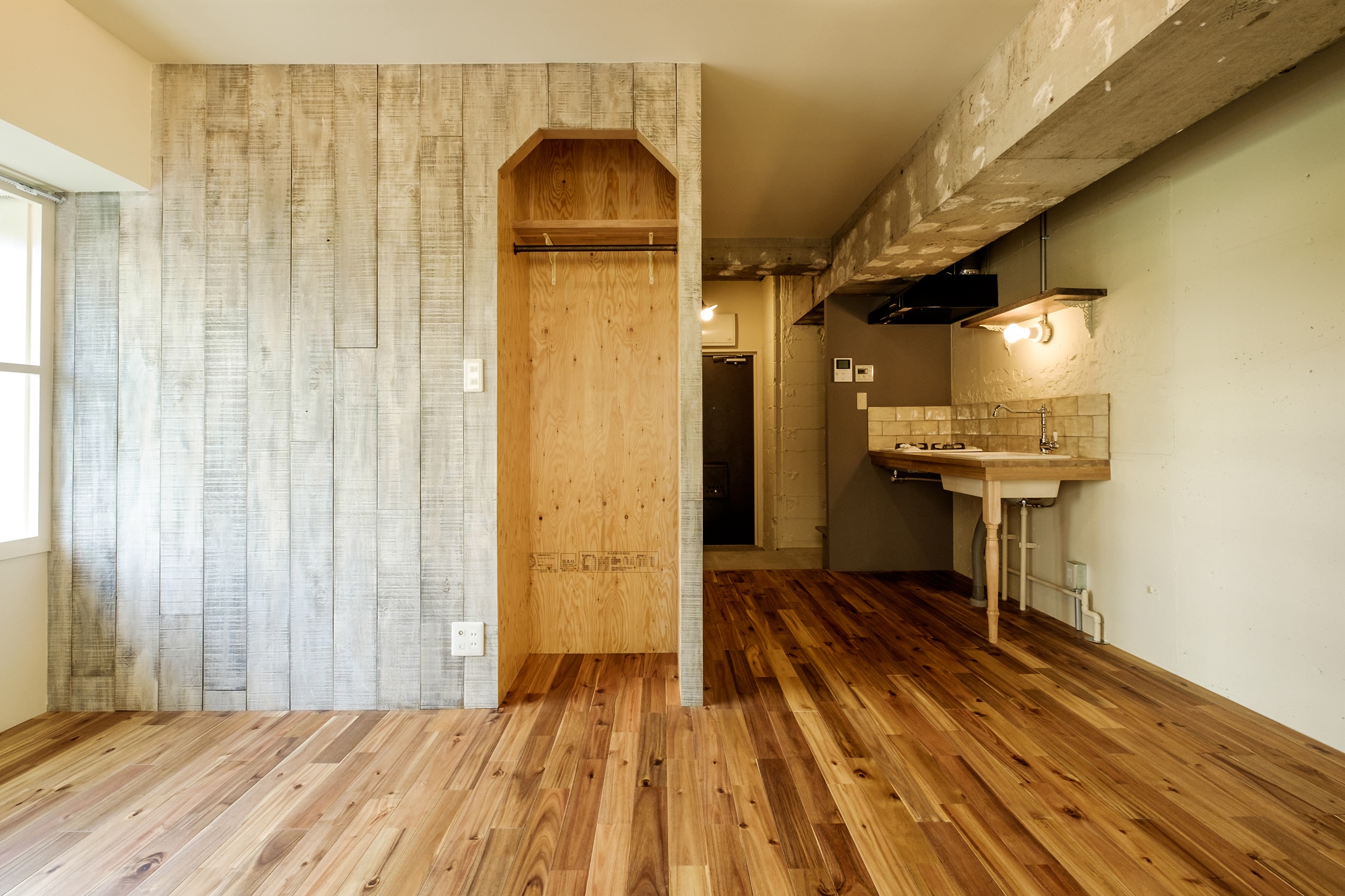 玄関を開けた途端、目に飛び込んでくるワイルドな躯体を持ちながらも、奥に広がる居室はどこか柔らかくもあり肌になじむような、そんな不思議な感覚が住む人を包みこんでくれるリノベーションシリーズ「Cotton」。アンティーク調のタイルや無垢のフローリングに温かみを感じつつ、時を重ねることであらわれる美しい経年変化を楽しんでみませんか。都心暮らしにはもってこいの程よく都心に近くアクセスも便利な「中野坂上」で、新しくもありナチュラルな東京スタイルはいかがでしょう。