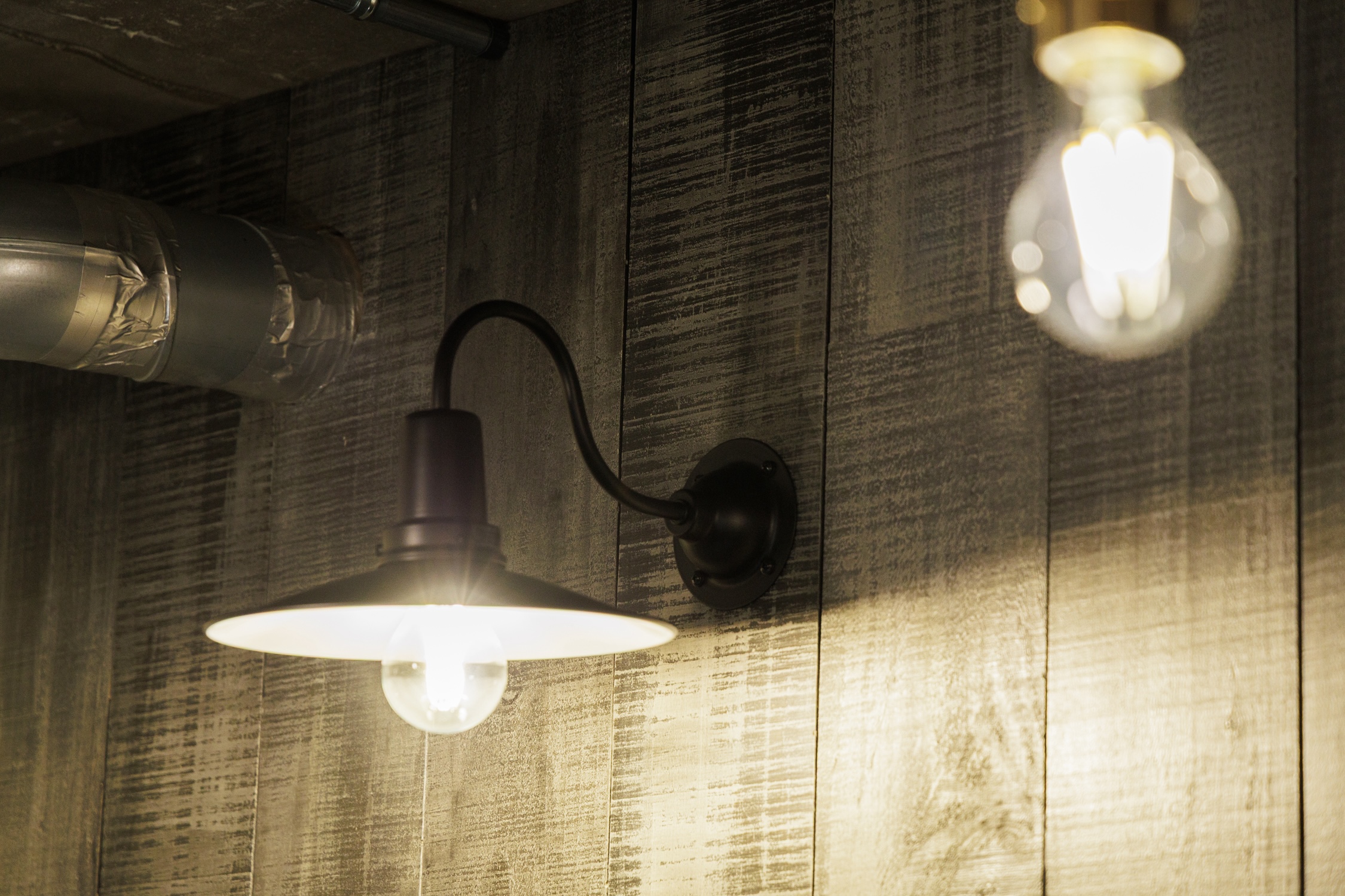 古材の壁面にブラケットをつけてポイントにしました。照明の下で読書をしたり、自分らしい時間を過ごす、安らぎの時間。コットンに包まれたようなやわらかで温かみのある暮らしを、この空間で実現できそうな予感がします。