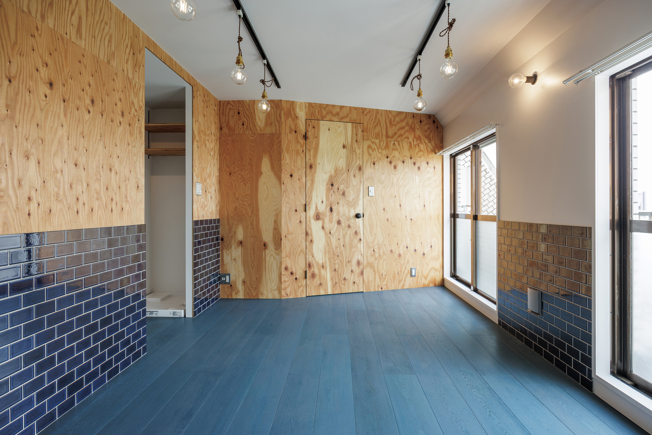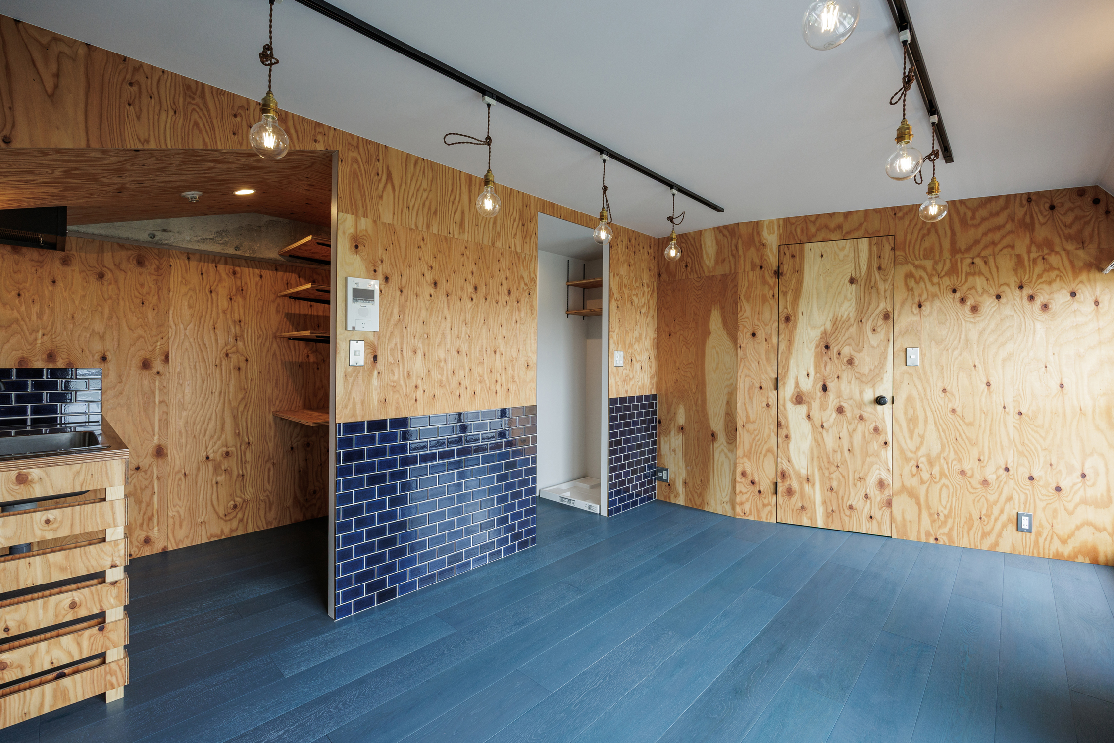 新宿・渋谷に好アクセスながら、どこか親しみやすい下町感が魅力の方南町。商店街が充実し生活利便性が高く、のんびりとした暮らしが楽しめます。そんな街に熟練の職人が手作業で作ったような温かみ感じるリノベーションシリーズ「Craft」があります。扉を開けると目に飛び込んでくるのはブルーグレーに塗装された無垢フローリング。アーティスティックなカラーがウッディな空間の差し色になっています。水回りを囲う壁は斜めに造作し、木目が特徴的なアーティスティックな壁も合わせてお部屋のアクセントになっています。2面採光で自然光が差し込むお部屋は、青い艶やかなタイルがキラキラと輝いてくれそうな予感。三角屋根が特徴的なキッチンは少し奥まった位置にあることで、まるで小屋の中で料理をしている気分が味わえます。背面にはしっかり奥行のある可動棚もついているので利便性・収納力も抜群です。側面のすのこラックはS字フックでちょっとしたアイテムを引っ掛けられる仕様になっています。木目の表情豊かな無垢材やブルーグレーのフローリング、タイルなど個性が映える空間で、リノベ暮らしを始めてみませんか。