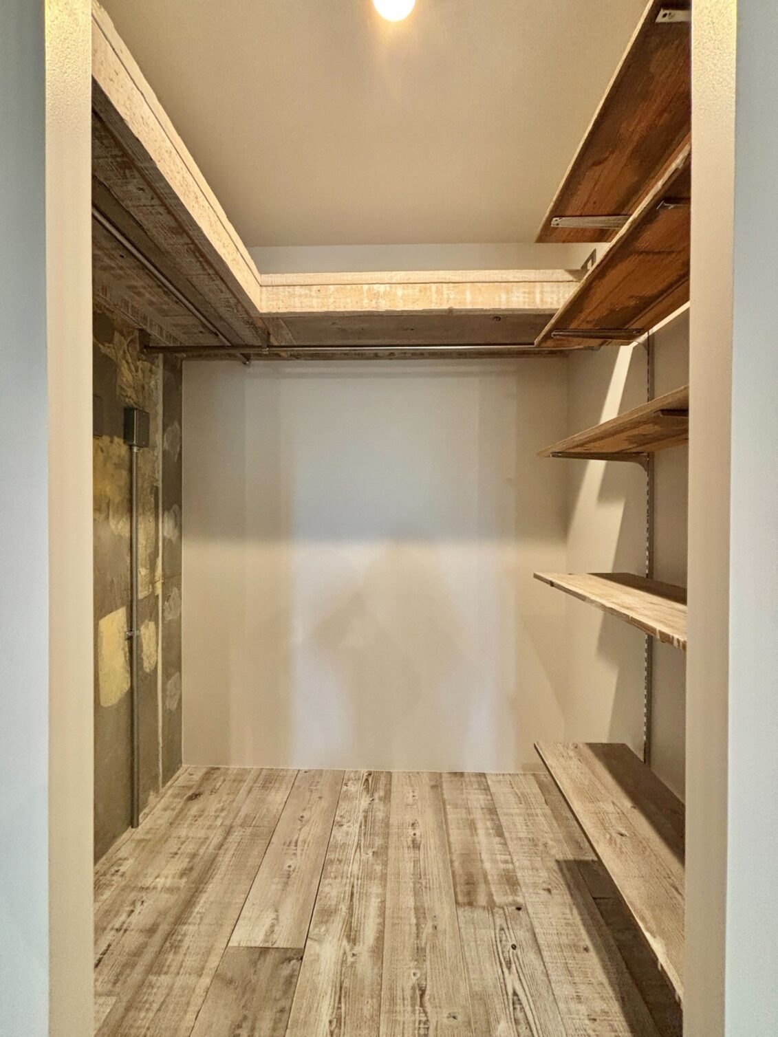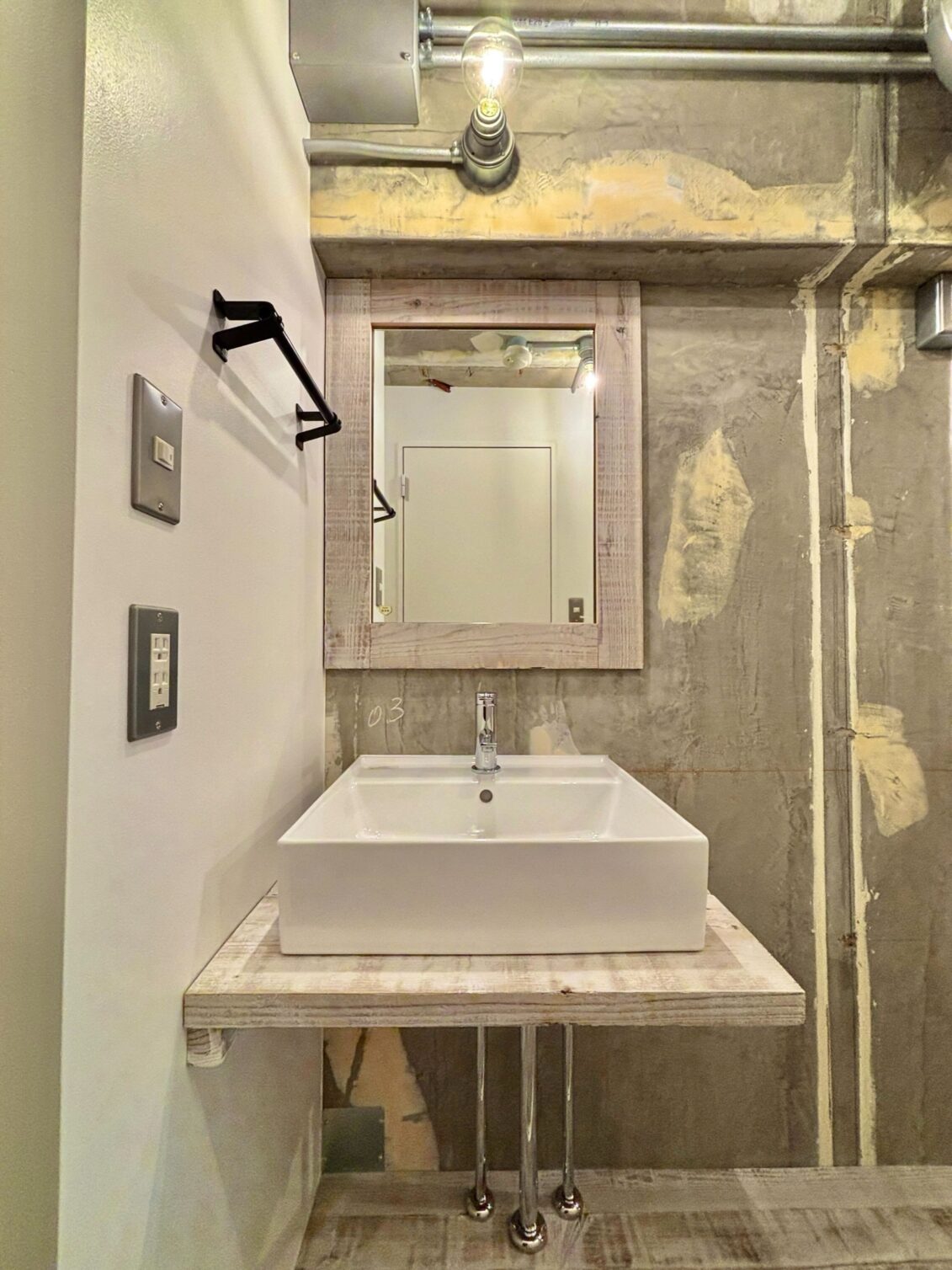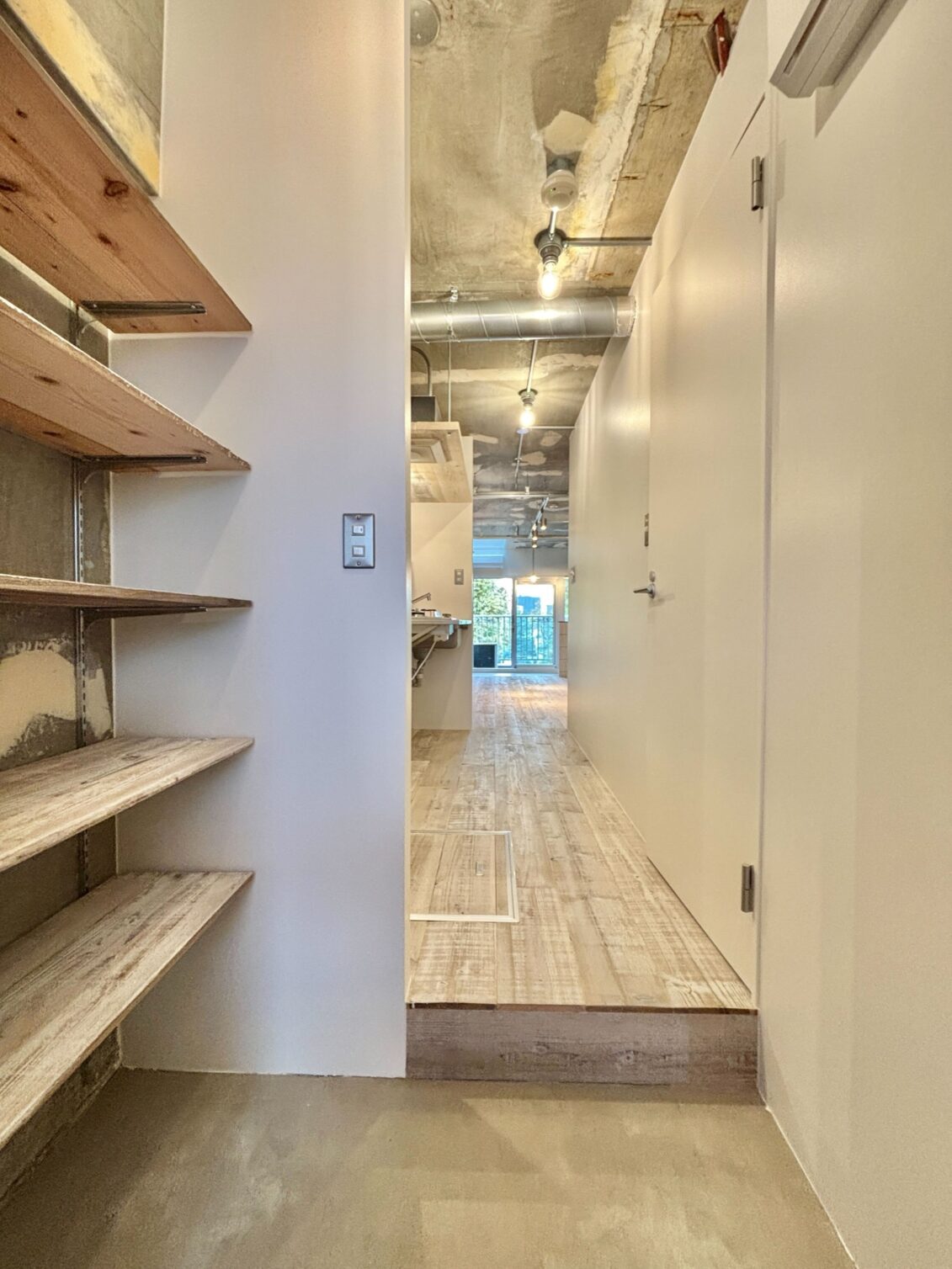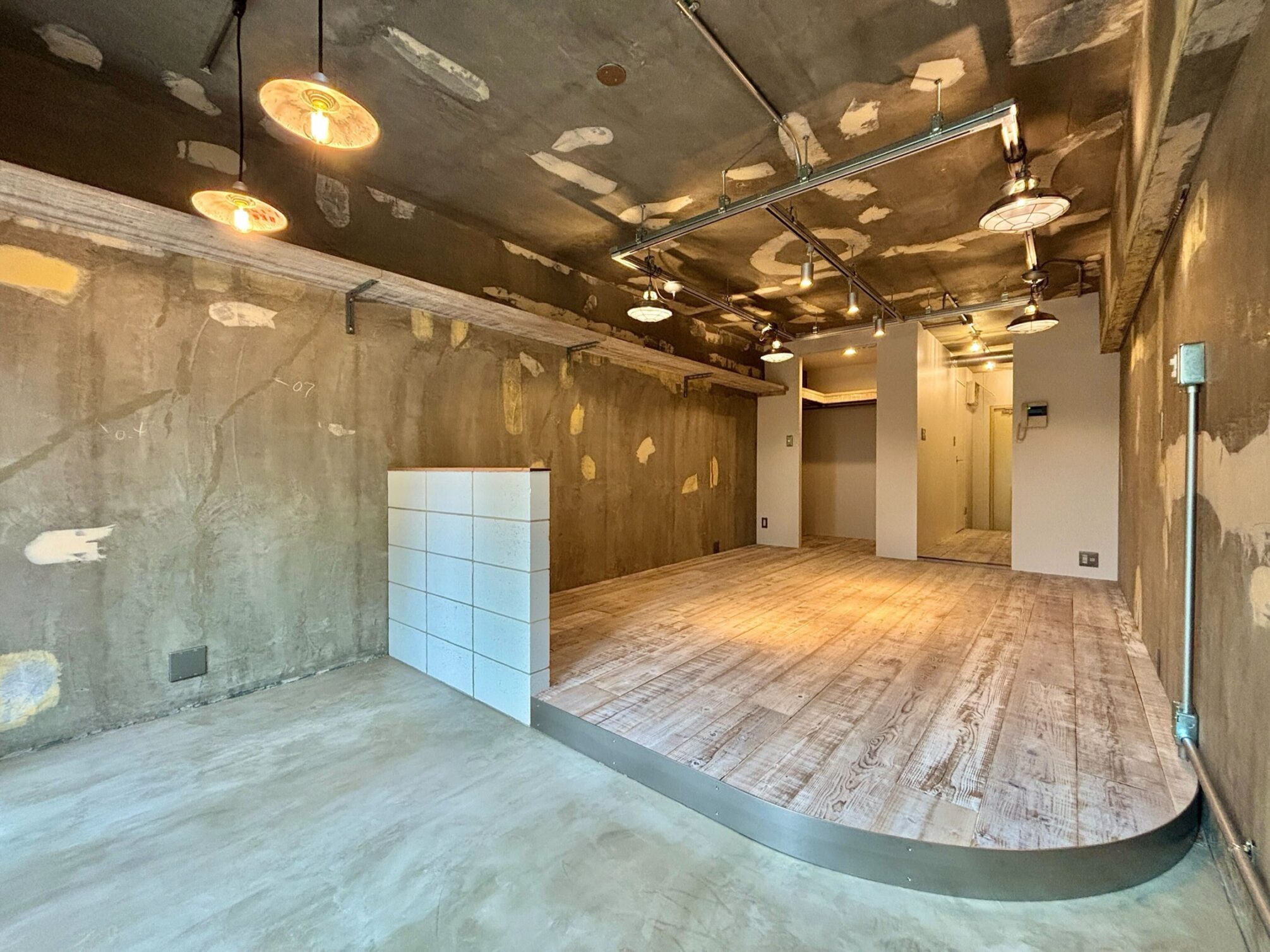 個性豊かな飲食店やショップが点在し、食やカルチャーを楽しめる大久保。新宿駅も徒歩圏でアクセス良好。活気ある商店街と下町の温かみが混在する街に「Garage」シリーズがあります。コンクリートや足場板のフローリング、天井の倉庫風レールなどシリーズ名の通りガレージのような空間のお部屋。洗面台は廊下に独立させ、ガレージの特徴であるすのこラックなどを仕込みます。1.2畳ほどあるウォークインクローゼット完備でモノ持ちさんも安心の収納力。居室には柱を境にインナーテラスを設けました。既存の天窓の下にダイニングを置いてくつろいだり、ベッドスペースにするのもおすすめ。無骨なコンクリートブロックの腰壁、床の切り替えにはアール加工を施し、粗野感の中にも柔らかさをプラスしてバランスを調整しました。緩やかなゾーニングが叶うお部屋で、様々なライフスタイルを楽しんでみませんか。