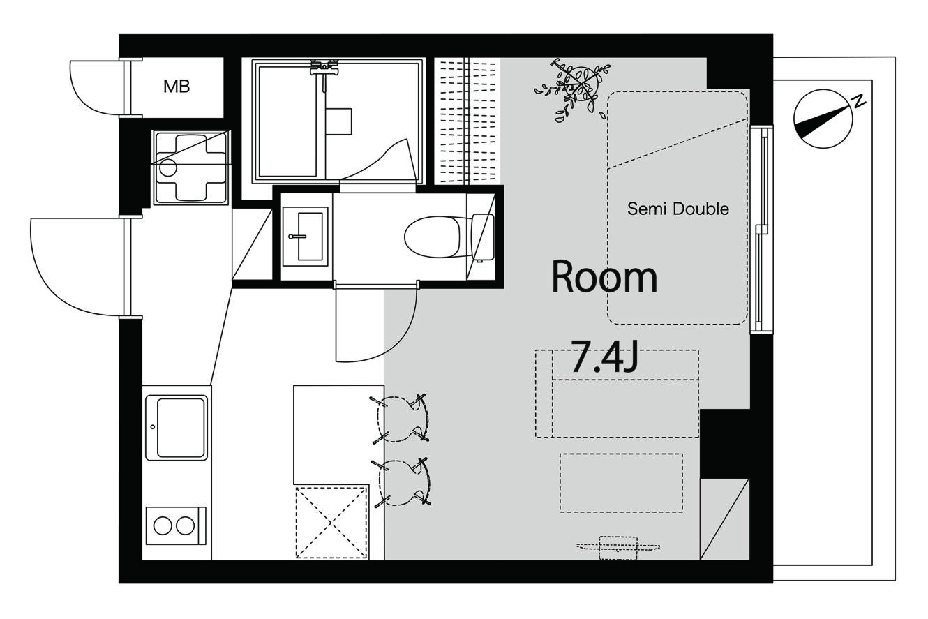地下鉄から地上に上がるとそびえ立つ高層ビル。「中野坂上」ってこんな感じなんだと意外に思うかもしれない。新宿、渋谷、池袋に出やすく交通の便は文句はない。駅内や駅周辺には、パン屋やコンビニ、カフェやファストフードなどが揃っている。区画整理が綺麗にされた大通りを下れば、大型のスーパーやドラッグストアやファミレスと並ぶ。一本通りを中に入れば静かな住宅街。駅から歩くこと7分ほど、静かに流れる神田川のすぐ近くに「iCafe」はある。板チョコみたいなブラウンのドアを開ければ私専用のカフェカウンターがお出迎え。セパレートタイプのキッチンは作業のしやすさはもちろん、ダイニングやデスクとしても使える。大きな裸電球が暖かな色で照らす、その下で何をしよう。ワイドな足場板の床材は、長く使い込まれた風合いが残っていて、ところどころにペンキや印字のあとに愛着を感じる。居室の窓からは緑が見え、自然光が入ってくる。好きなものを揃えて、持ってきて…きっと、この部屋に帰ってくる度に、このカフェカウンター越しの生活を愛おしく思うだろう。