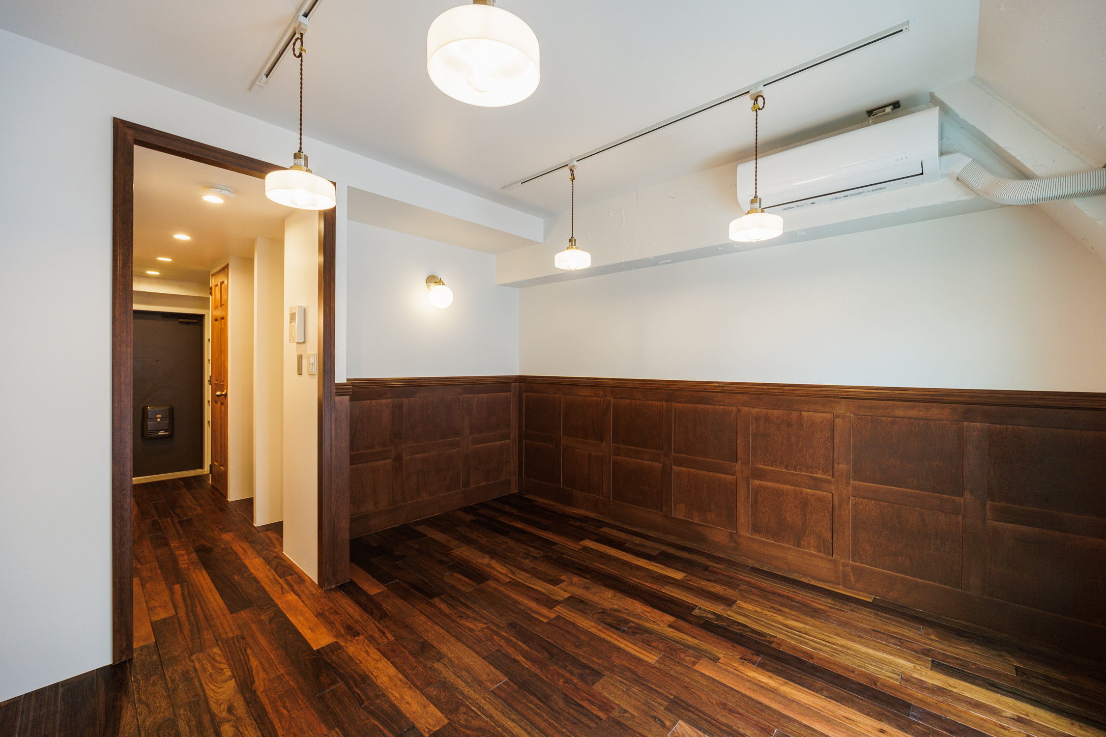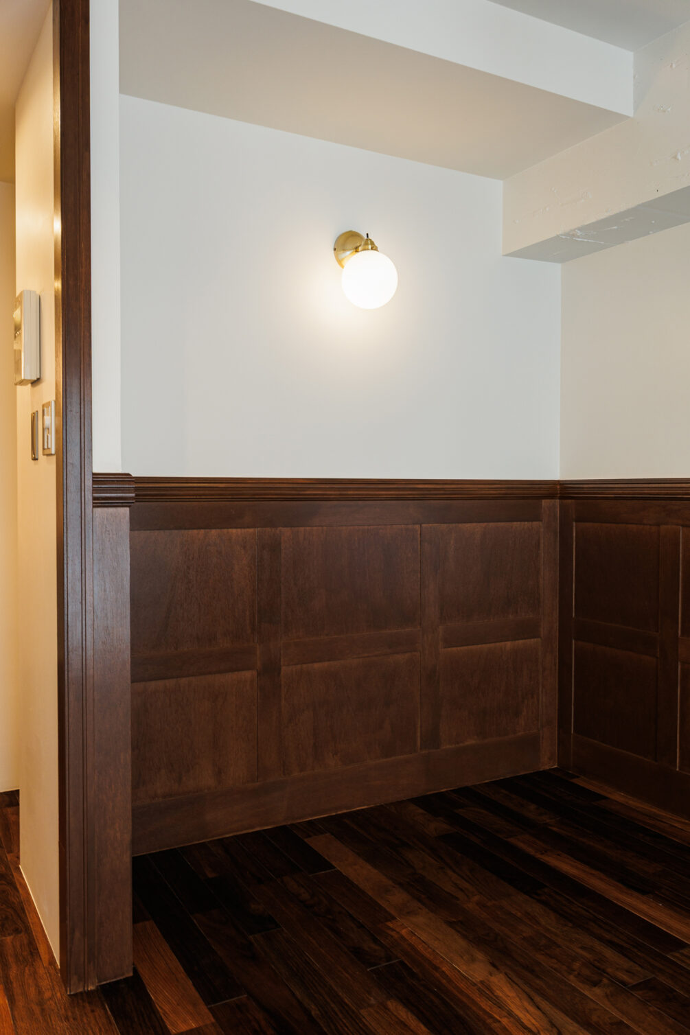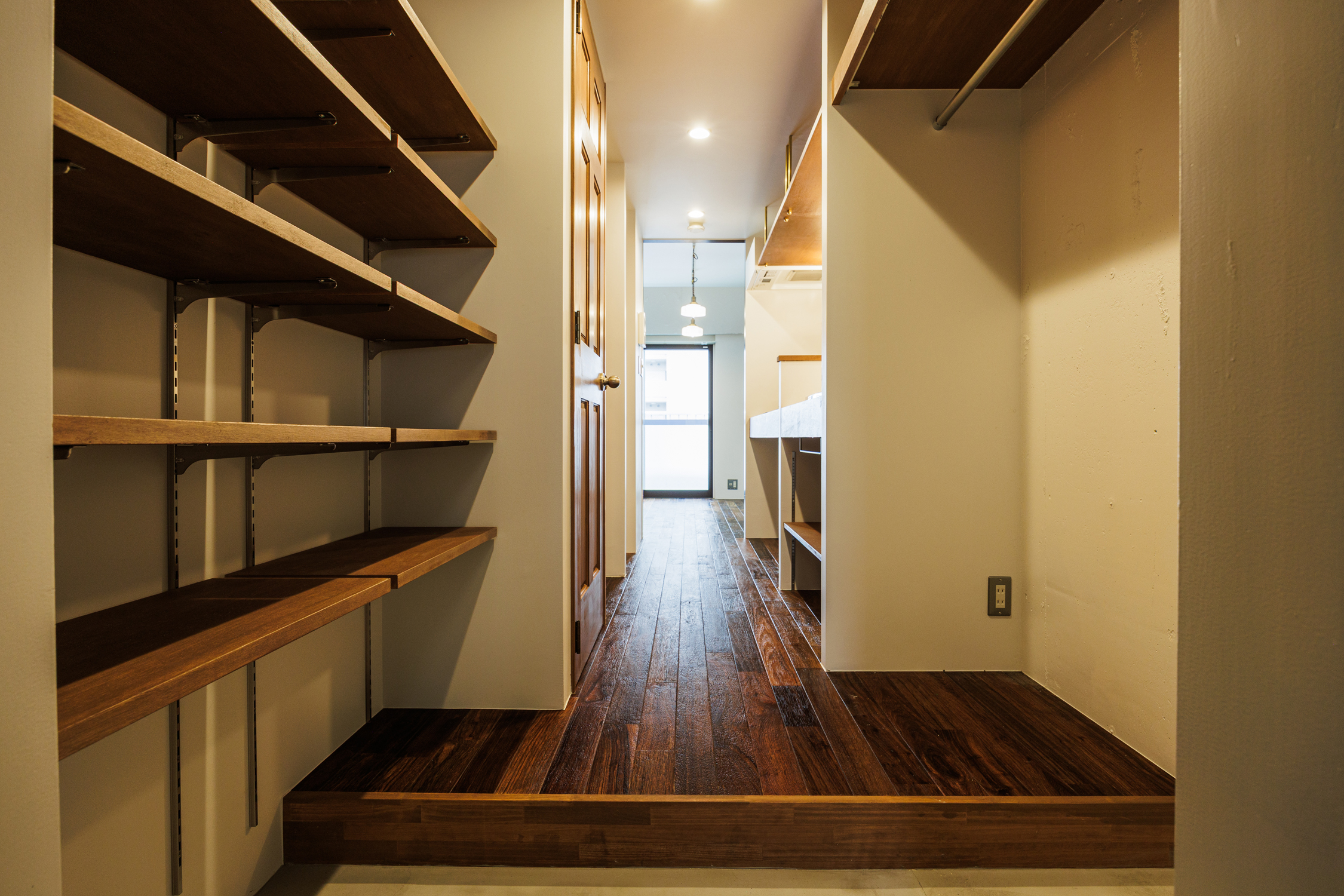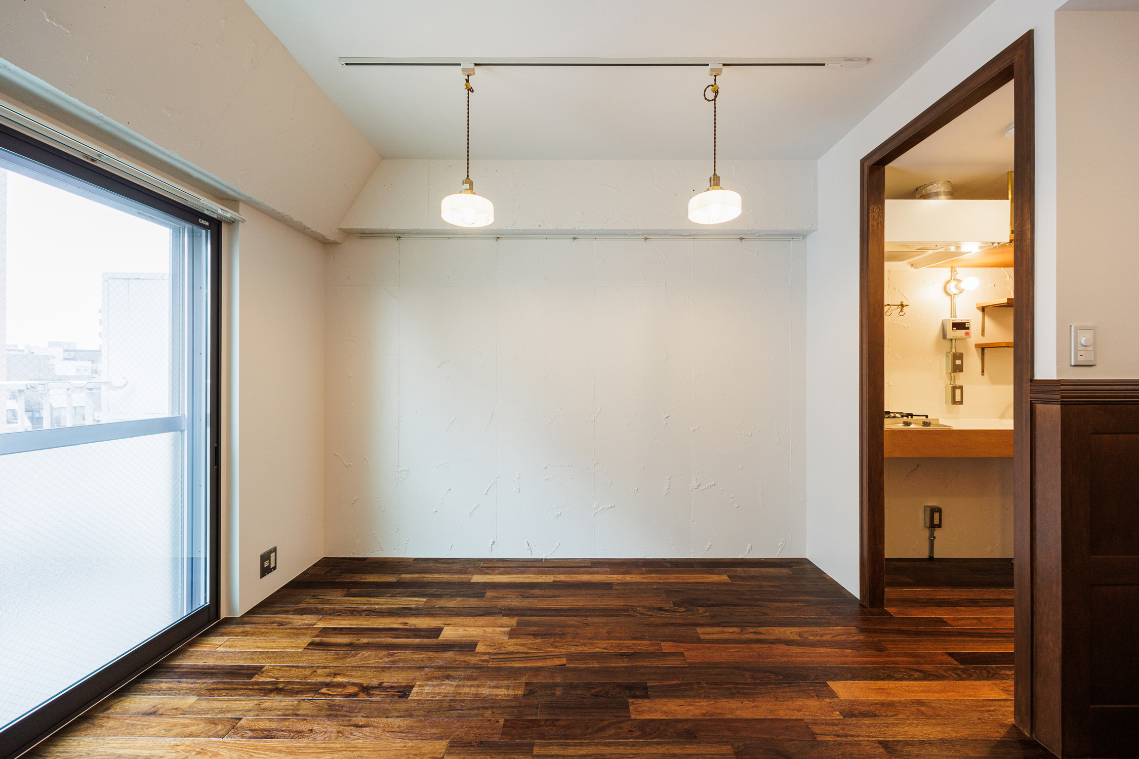 利便性抜群の交通網に加え、商業施設・飲食街が充実し老若男女が集う。隅田川や公園も近く、日常にちょっとしたリラックス空間がある点も魅力的。そんな錦糸町エリアに重厚感のある洋館を思わせるリノベーションシリーズ「KiLT」があります。玄関入るとすぐ、ワイドの広いオープンクローゼットがお出迎え。対面の可動棚は2列で収納力抜群です。特徴的な贅沢な洗面台は日々の身支度も気持ち良くできそうな予感。キッチンと繋がった白いタイルのカウンターが印象的です。キッチンは廊下に位置していることで居室から生活感が気にならないのもポイント。キッチン背面には調理家電なども置ける棚を設置し使い勝手も良好です。居室はKiLTの名前の由来にもなったキルトスカートのような腰壁を贅沢に貼り付けました。印象的なペンダントライトで雰囲気のある空間です。コの字に囲まれたこじんまりと居心地の良いヌックスペースは、読書など趣味に没頭したり、デスクを置いて作業に集中したり。さまざまに活用いただけます。アンティークなイギリスの空気感漂う空間でとっておきの一人暮らしを始めてみませんか。