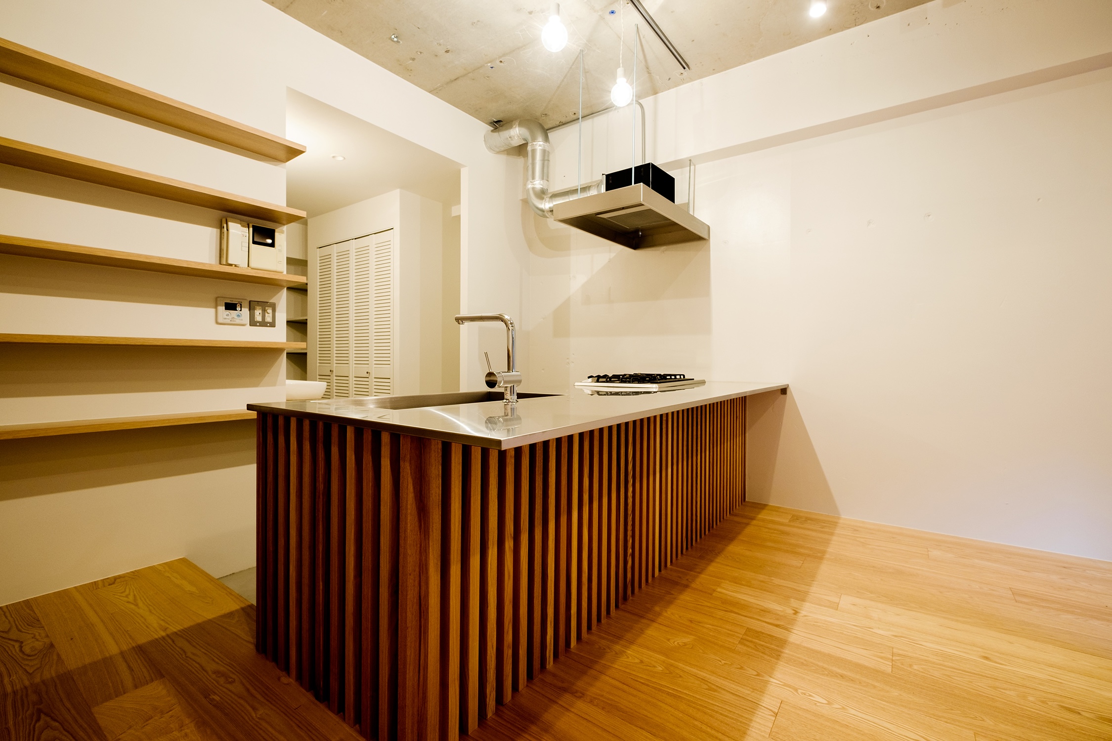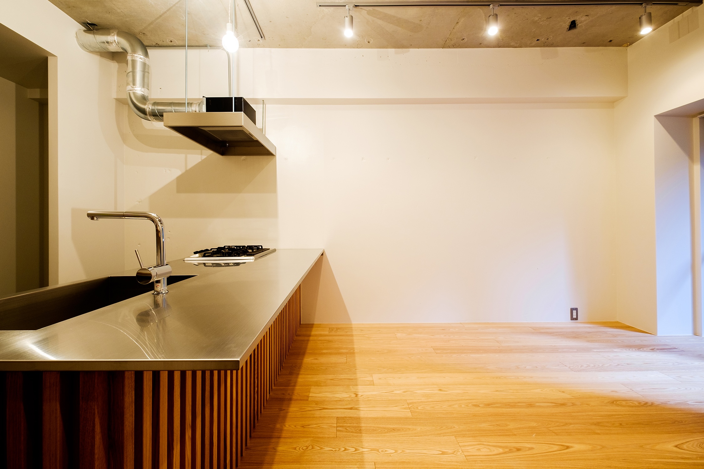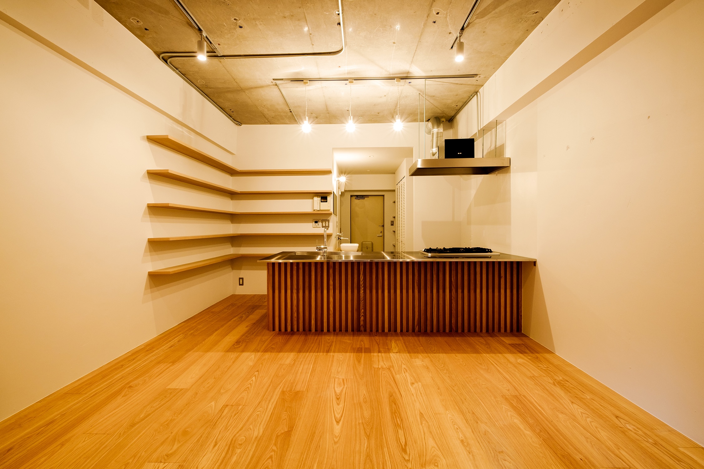 古着や個性的なカフェ、雑貨屋など様々な楽しさがギュッと詰まった高円寺。夏には阿波踊り、秋には高円寺フェスなどのイベントがあり、賑やかで活気のある街です。そんな自由な高円寺に似合いのリノベーション賃貸「Kitchen」が登場。お部屋の主役であるカウンターキッチンはお手入れしやすいステンレス天板に、品のある木目のタモ材をふんだんにあしらいました。丸みのあるペンダントライトは、食事の時間を温かく演出してくれそうです。壁面に施した飾り棚にはスパイスボトルや器など、ずらっと並べてしまうことも可能。3口コンロにグリル付きで、どんなこだわり料理も振る舞える贅沢なキッチンで、ゲストを招いて食卓を囲む楽しみが広がることでしょう。