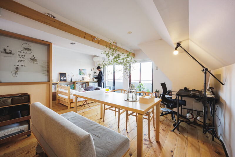 「もともと住んでいた部屋よりも広くて、デザイン性のある作りに惹かれました。陽当りも良いし、明るい色味の木材を多く使用していて部屋自体が気持ち良いんですよね。引き戸の上部だけガラスになっているので、閉めても圧迫感がないのも気に入っています」