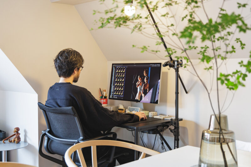 「このデスクは以前から使用しているもので、チェアはVitra(ヴィトラ)のPhysix(フィジックス)。基本はこのデスクで仕事をしていますが、テーブルでしたりキッチンのカウンターで仕事をしたりと、その日の気分で変えたりしています 」