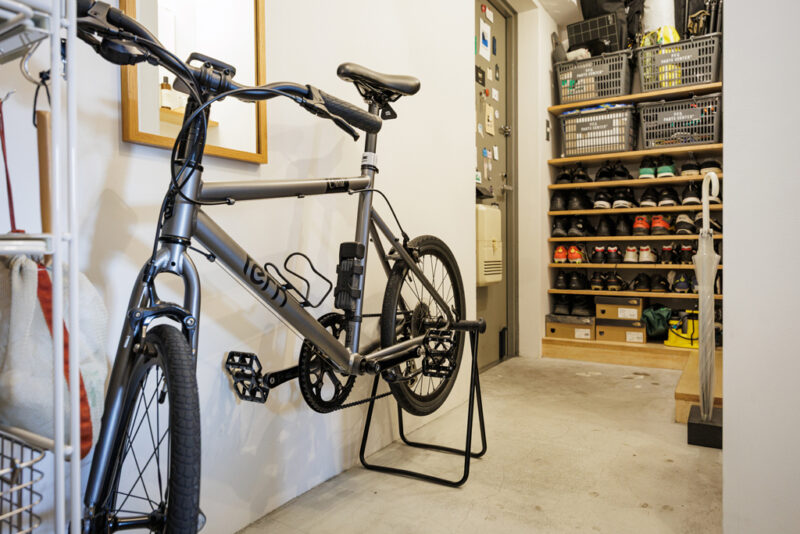 「この土間スペースも、部屋を決める際のきっかけになりました。なかなかないですよね、土間がある部屋って。キャンプ道具を洗って下に置けるので、すごく使い勝手がいいんですよ」