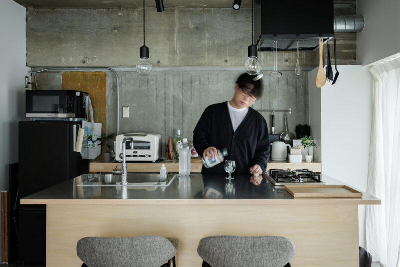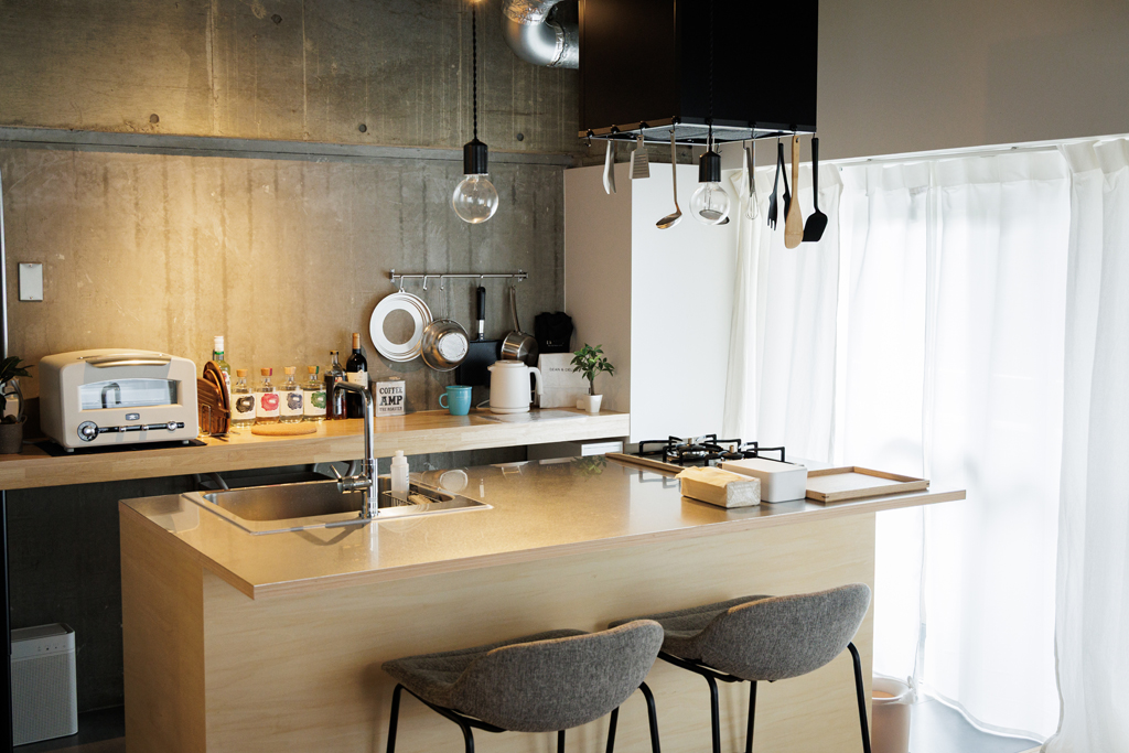 「前に住んでいた部屋ではほとんど料理をしなくて。料理を作ることはあっても、楽しみながら作るっていう感覚はなかったんです。だから、部屋を決める際にキッチンを優先することがなくて。でも、このキッチンを見たときに、楽しく料理が作れそうだなって思えたんです。このカウンターなら何色の椅子を置いたら合うかな……なんてイメージも湧いてきて。今まで人を呼んでもてなすってことをしたことがなかったんですけど、はじめて人を呼びたいって思ったんですよね(笑)」