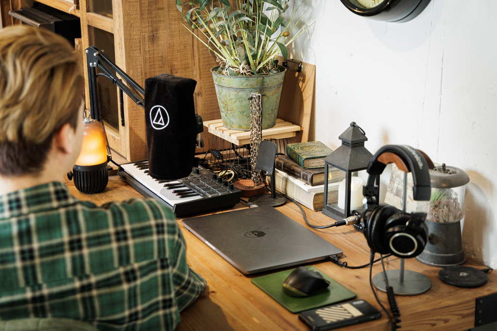 「YouTubeで音楽配信のインフルエンサーをしていて。ここでレコーディングをしたあとYouTubeで配信しています。たまに趣向を変えた曲を紹介したりもするんですけど、熱した鍋に触れて音が出るキノコのメロディーを曲にして配信したらバズって(笑)。作詞作曲したものを流したり、お笑い要素を取り入れたりと色々やっています」