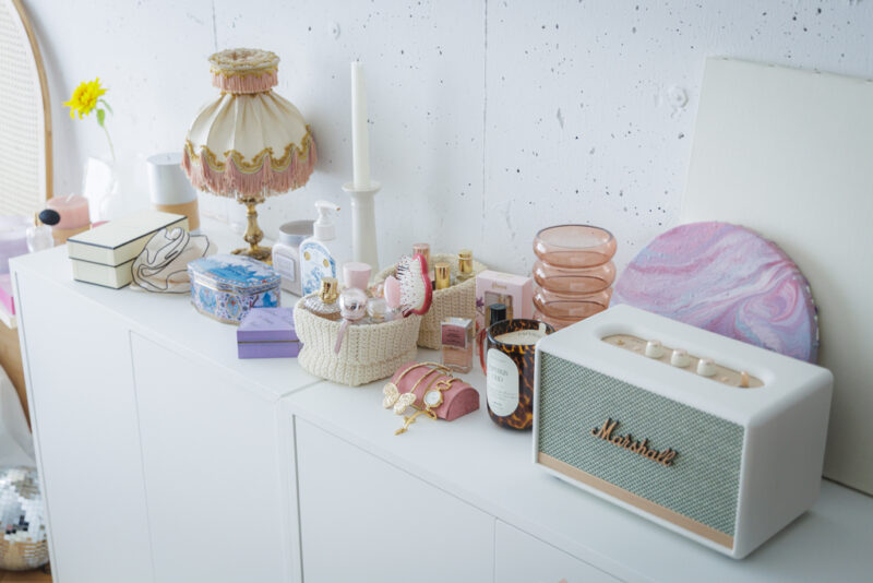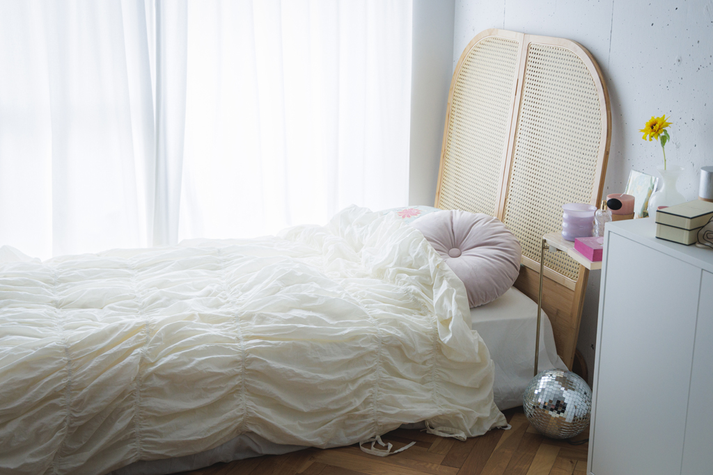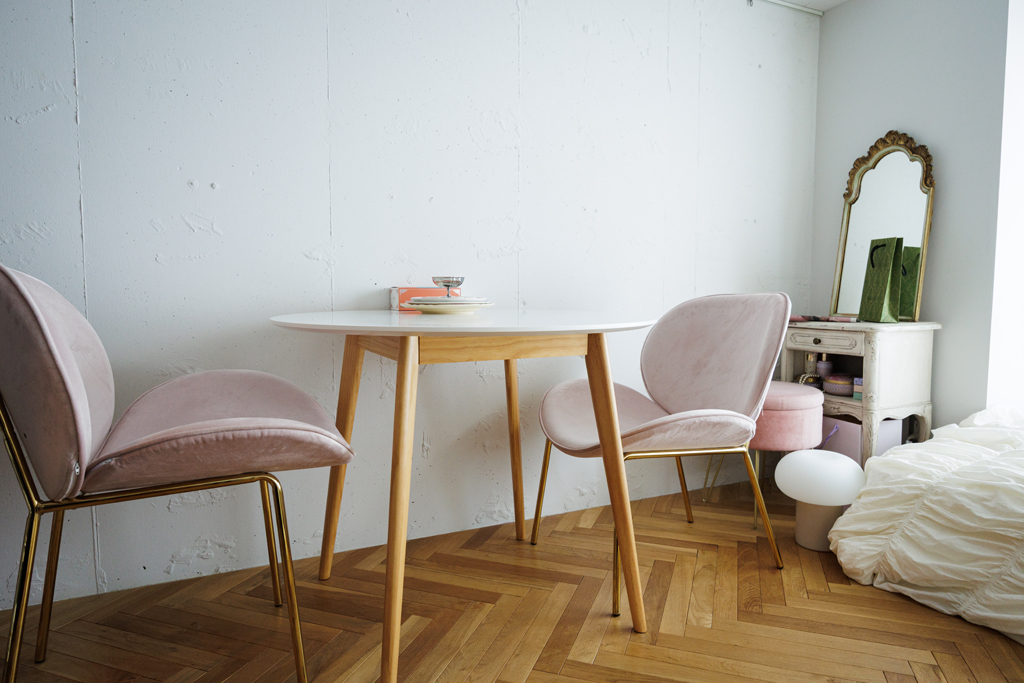 「IKEAやインテリアショップで買ったりもしたんですけど、テーブルと椅子はBUYMAで買いました。形も色も可愛くて、持っている小物にも合うと思ったんです。母がこの部屋に来たときは、『世界観がぴったりだね』って言ってくれて。友だちからは、『まるでお城みたい』って(笑)。私に合っているって言ってくれたのが嬉しかったですね」