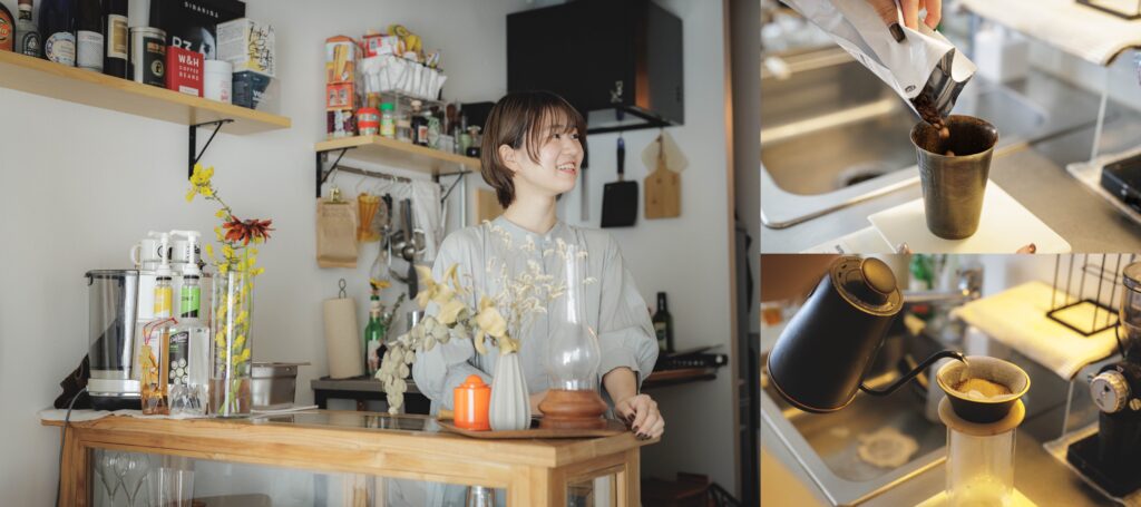 「誰かが来たら、ここに座ってもらって、私はこっちでコーヒー淹れて。『お店じゃん』ってよく言われます(笑)でも、それがやりたかったんですよね」