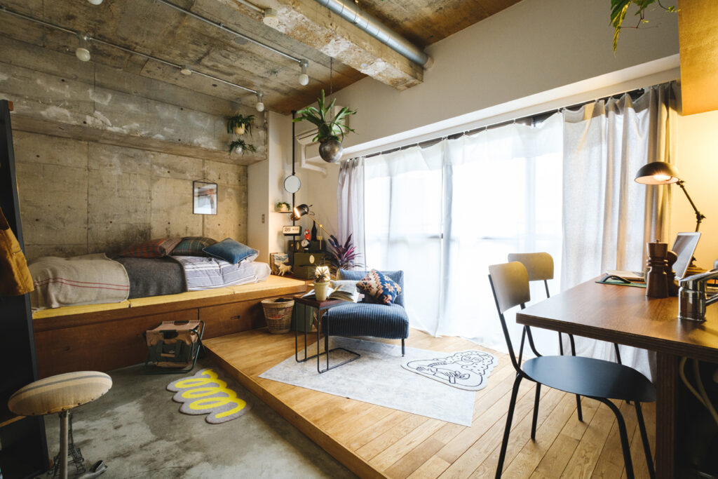 ロフトベッドの下にソファーやデスクを置くなど、2階構造にするのも効果的。