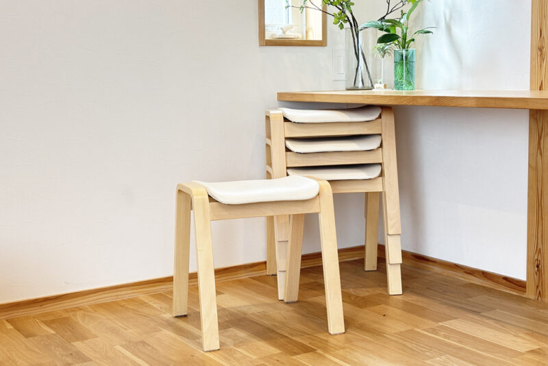 折りたたみ式のイスやテーブル、スタッキングできるスツールは、来客時だけ出してきて、使わない時にはしまっておける便利な家具。