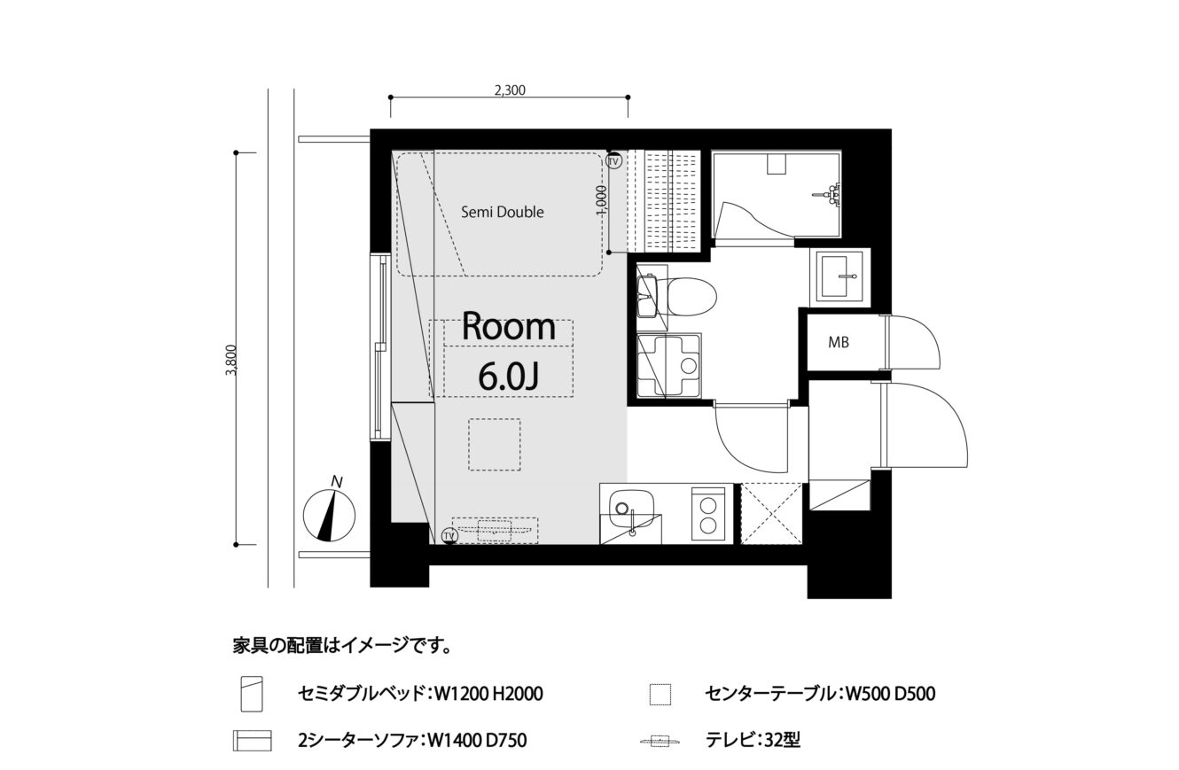 正方形に近いキレイな躯体のPlain空間は、水回りとクローゼットを効率よくまとめることでコンパクトながらも収納力たっぷり。横長が特徴的な居室は1Rながらもリビングと寝室をゾーニングしやすく、暮らしやすさにこだわった間取りです。