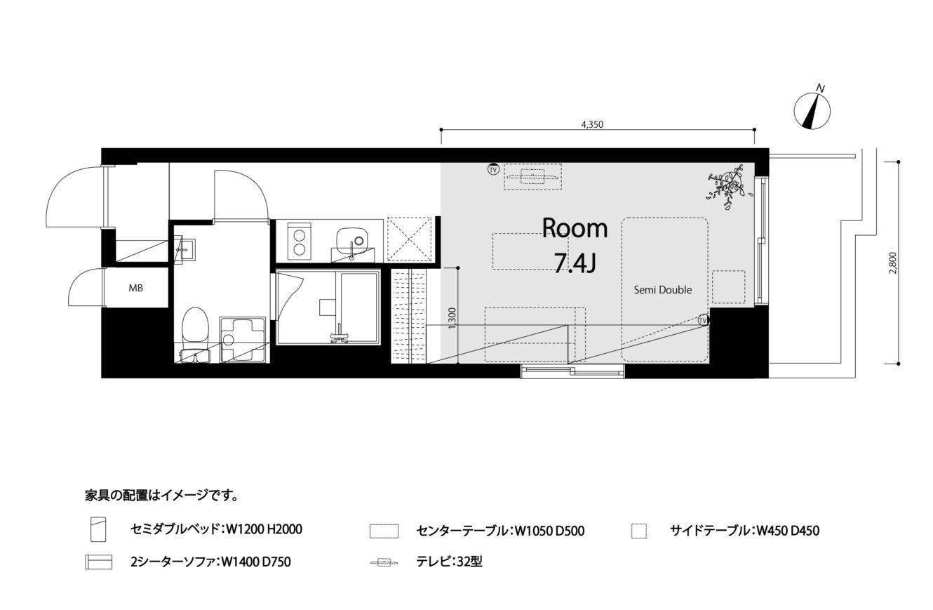 TX浅草駅や入谷駅など複数路線が使えて、最近は歴史ある下町としてだけでなくアートギャラリーも多い浅草千束。新たなカルチャーが生まれる街に個性豊かなアクセントカラーが映えるリノベーションシリーズ”Plain”の部屋がある。7畳を確保した少し広めなシンプルワンルームながらも、壁の上部や梁に沿った収納など細部にこだわりが感じられる間取り。床材であるバーチ材から感じられるしっとりとした質感は足触りも良く、まるで自然素材に囲まれたかのよう。その無垢材と相性ぴったりな青苔緑色の壁面はナチュラルさとインパクトが同居したようなイメージで住む人のライフスタイルを彩ってくれます。キッチンの壁面をはじめ、玄関、クローゼットなどにアクセントカラーのやわらかな緑色が広がっています。居室からはキッチンや冷蔵庫が壁で覆われているからインテリアの邪魔にならず、メインの生活空間を自分スタイルで作り上げられる受容力の高さが光ります。個性的でアーティスティックな暮らしがこの部屋から始まりそうです。