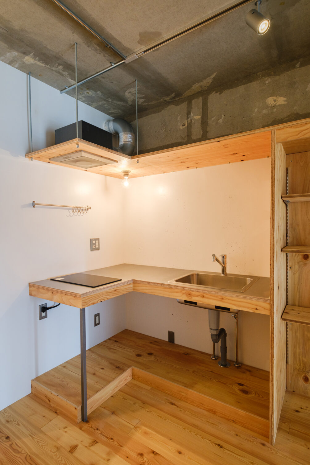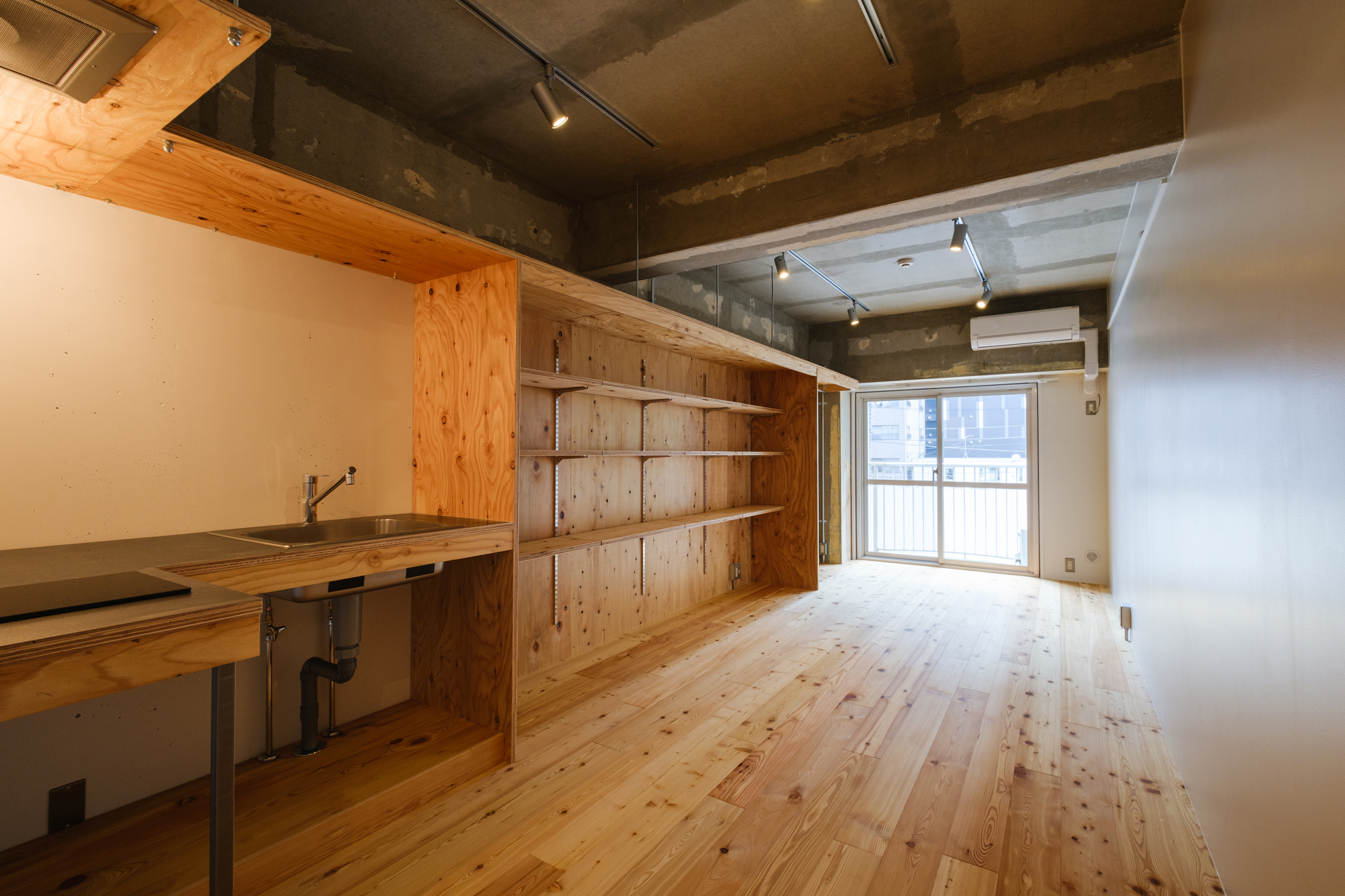 両国と聞くと真っ先に思いつくのは相撲かもしれない。両国国技館や江戸博物館などの施設が点在し、下町らしい雰囲気のある観光スポットとしても人気があり、外国人観光客も多い。両国駅にはJR総武線と大江戸線の2路線が乗り入れており、都内の主要駅に30分以内でアクセスできる便利な立地。また自転車での移動も便利で、上野、浅草、蔵前、錦糸町など15分ほどで行くことができる。そんなエリアにできたのは、カスタムウォールを壁一面に設置したリノベーション賃貸Rough。隅田川を背に玄関を開ければ、広めの土間玄関。シューズラックの他にもラーチ材の棚が設置されており、鏡を置いたり鍵やフレグランスをおくとお出かけ前に便利そうです。居室にはコンパクトながら使いやすいL字キッチン、そのまま壁沿いに3m越えのカスタムウォールが並ぶ。スニーカーや洋服を古着屋みたいに並べるのも、高さを調整してデスク側にもなるマルチな壁。東京の東側、下町両国であなたの生活に馴染む壁との暮らし始めませんか。