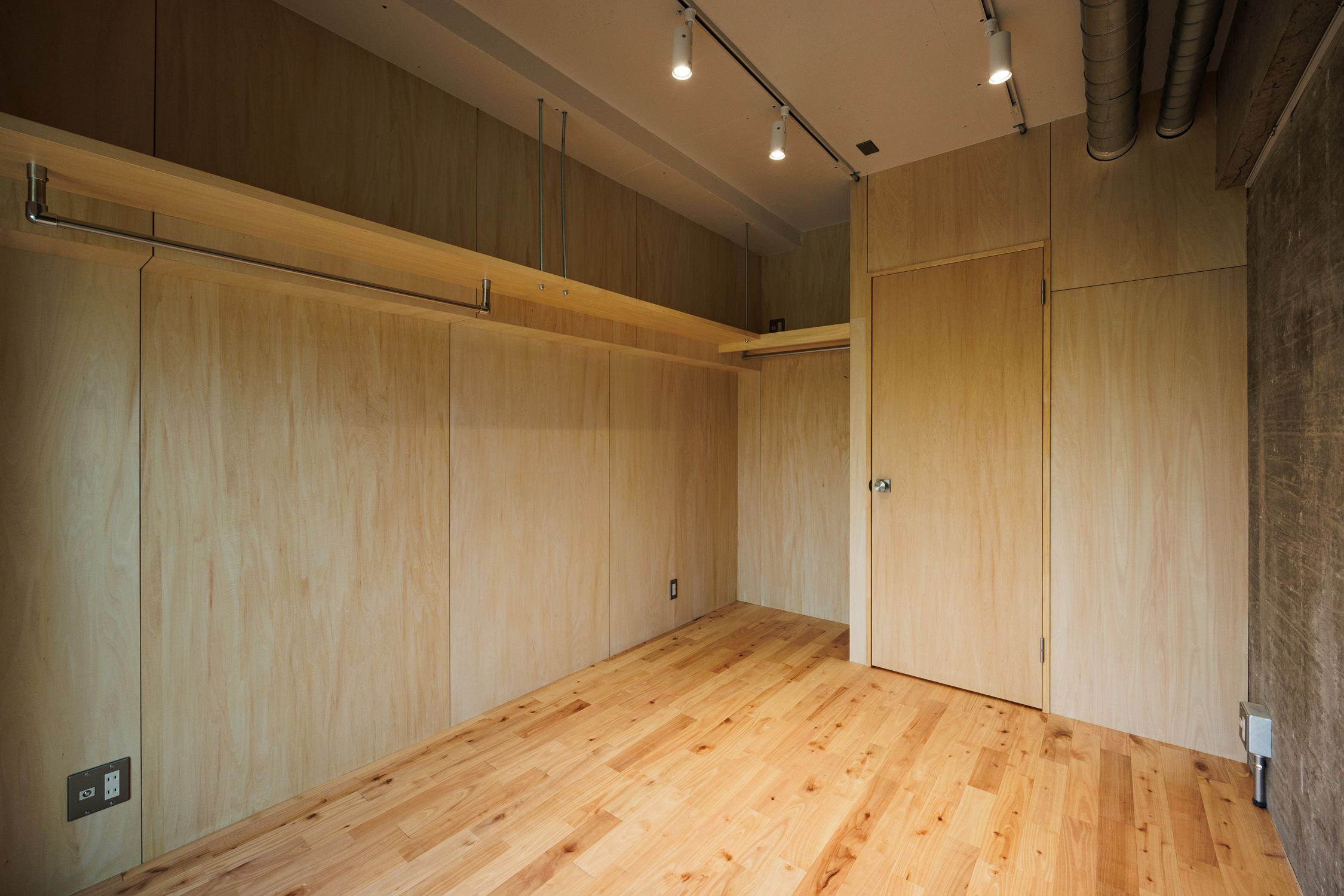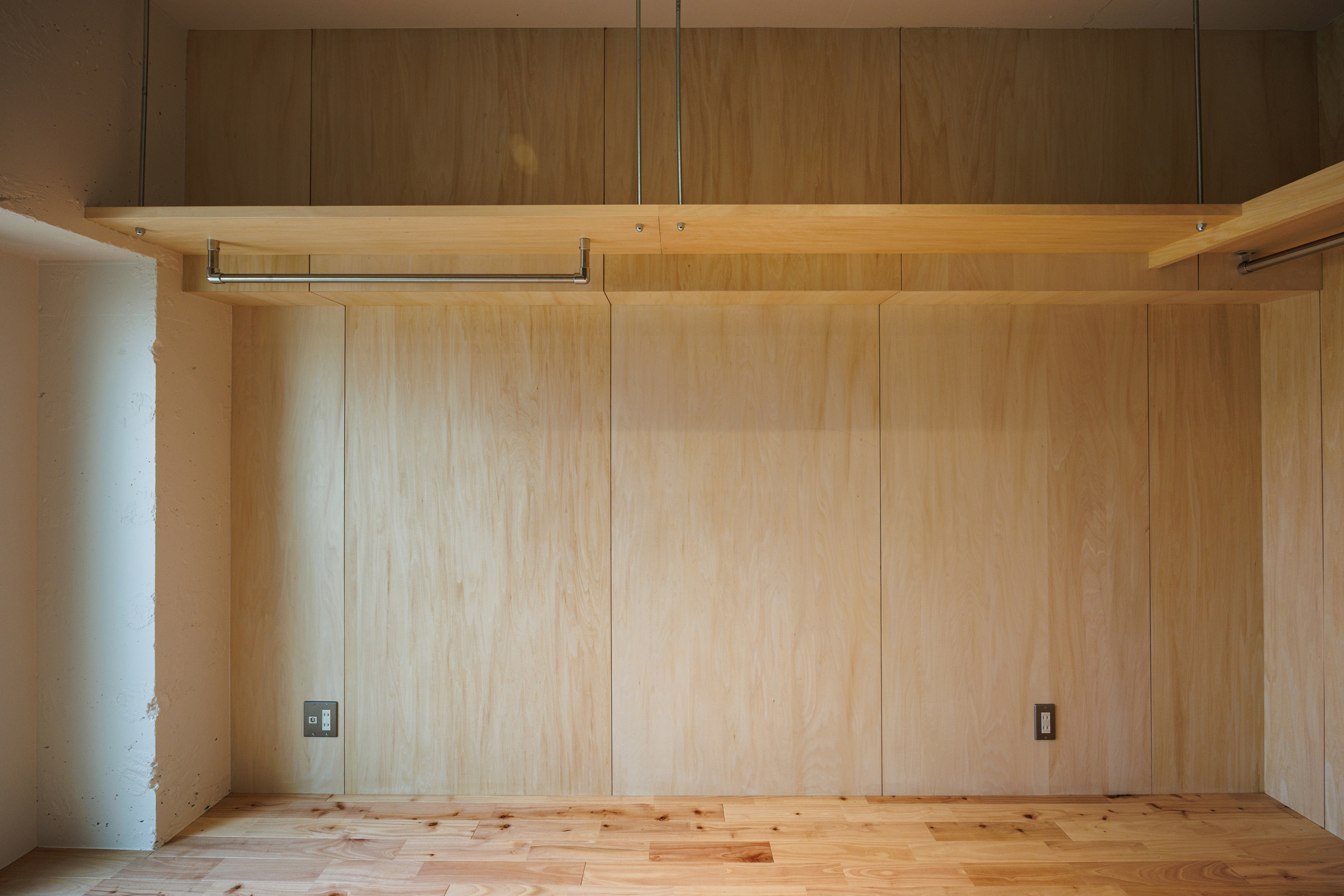居室にはクローゼットから繋がるように吊り棚を配置。ハンガーパイプをプラスすることで洋服持ちさんにも嬉しい設備に。ぜひお気に入りの洋服を飾りながら収納してください。