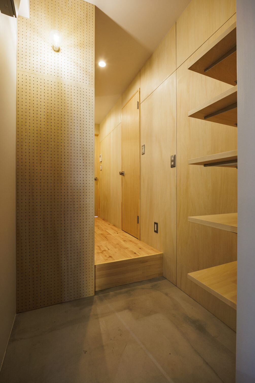玄関から水回りを通り越してクローゼットへ、そしてクローゼットから居室奥へ。繋がるシナ材がお部屋の雰囲気を演出してくれます。すっきり洗練された無垢材で落ち着いた暮らしが出来そうです。