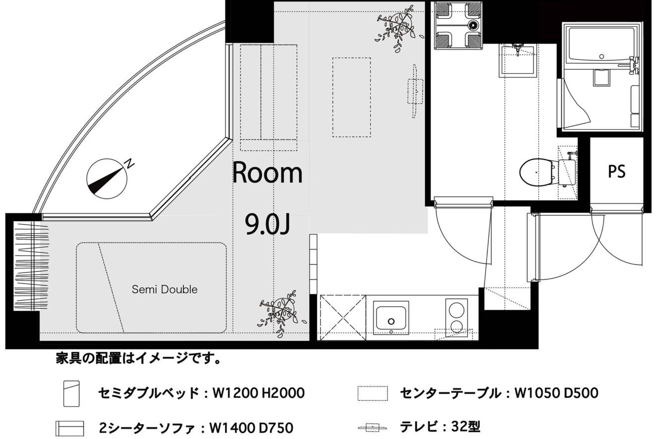 室内にはベッドスペースと居室スペースを分けて使えるような間取りで眺望もgoodなお部屋です。