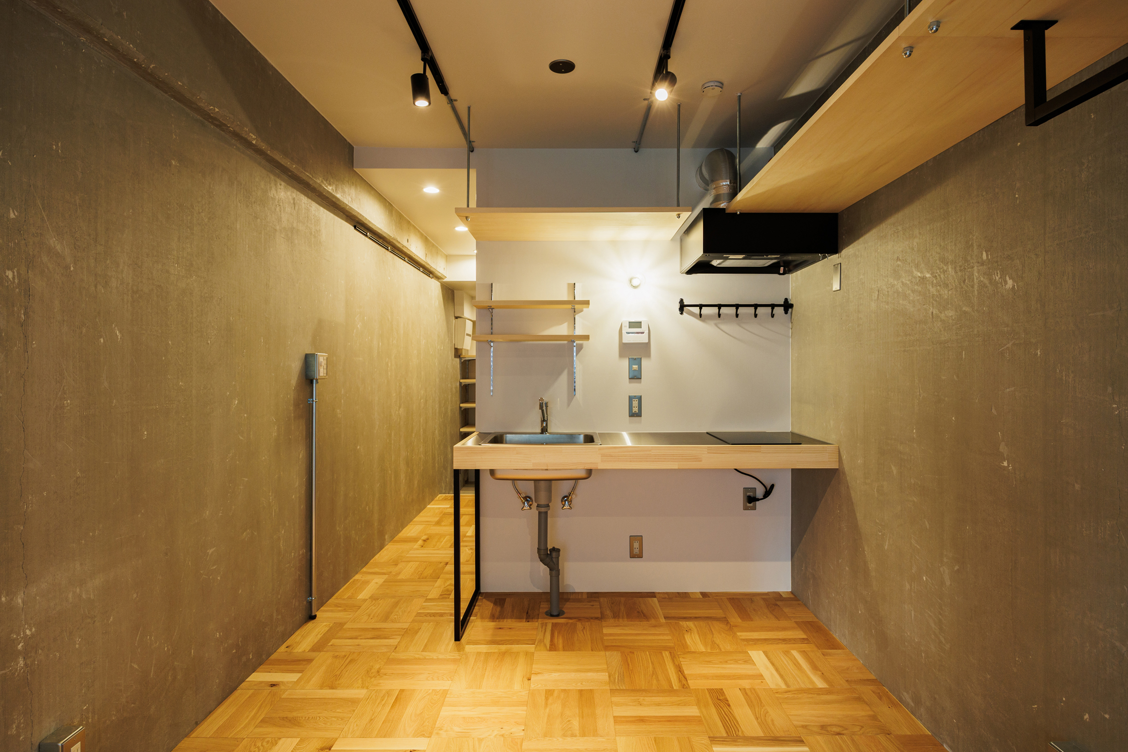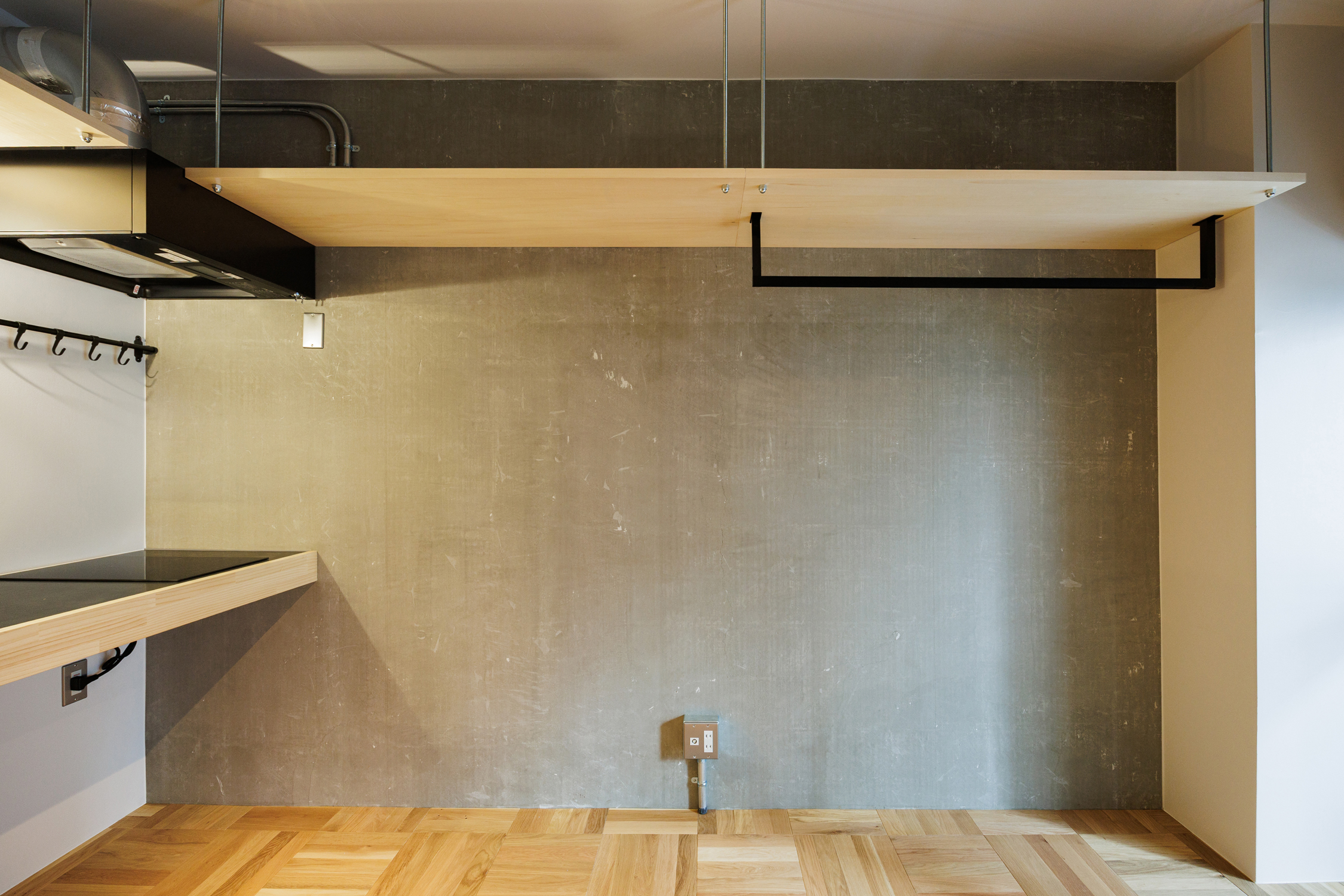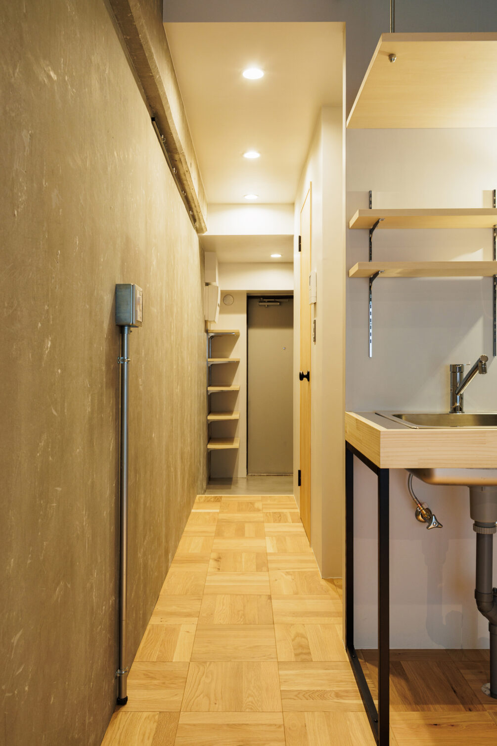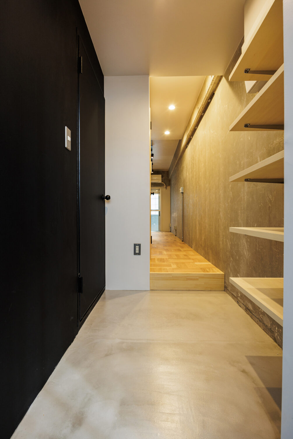 京王新線「初台」駅。新宿まで1駅2分、渋谷までも10分とアクセス抜群。駅前の洗練されたイメージの一方で、庶民的なお店や商店街でローカルな楽しみも豊富。また注目のショップや飲食店も点在していて散策しがいのある街です。そんな初台にリノベーションシリーズ”Union”があります。無垢材のナチュラルな雰囲気に、ブラックのアクセントカラーがモダンなテイストを吹き込んでいます。時代に左右されない上質な空間に仕上がりました。玄関を開けると自転車を置けるくらいの広い土間。左手の一面の黒はマグネットボードになっていて、思い思いのアレンジができそうです。丁寧に手作業で組まれたパーケットフローリングの上を進むと居室空間が現れます。無垢材と表情のキレイなコンクリートの壁に、白と黒が差し込まれた、洗練された空間。様々なインテリアと合わせやすく、手持ちの家具もきっと輝かせてくれます。街と部屋と、調和して馴染む暮らしができそうな予感がします。