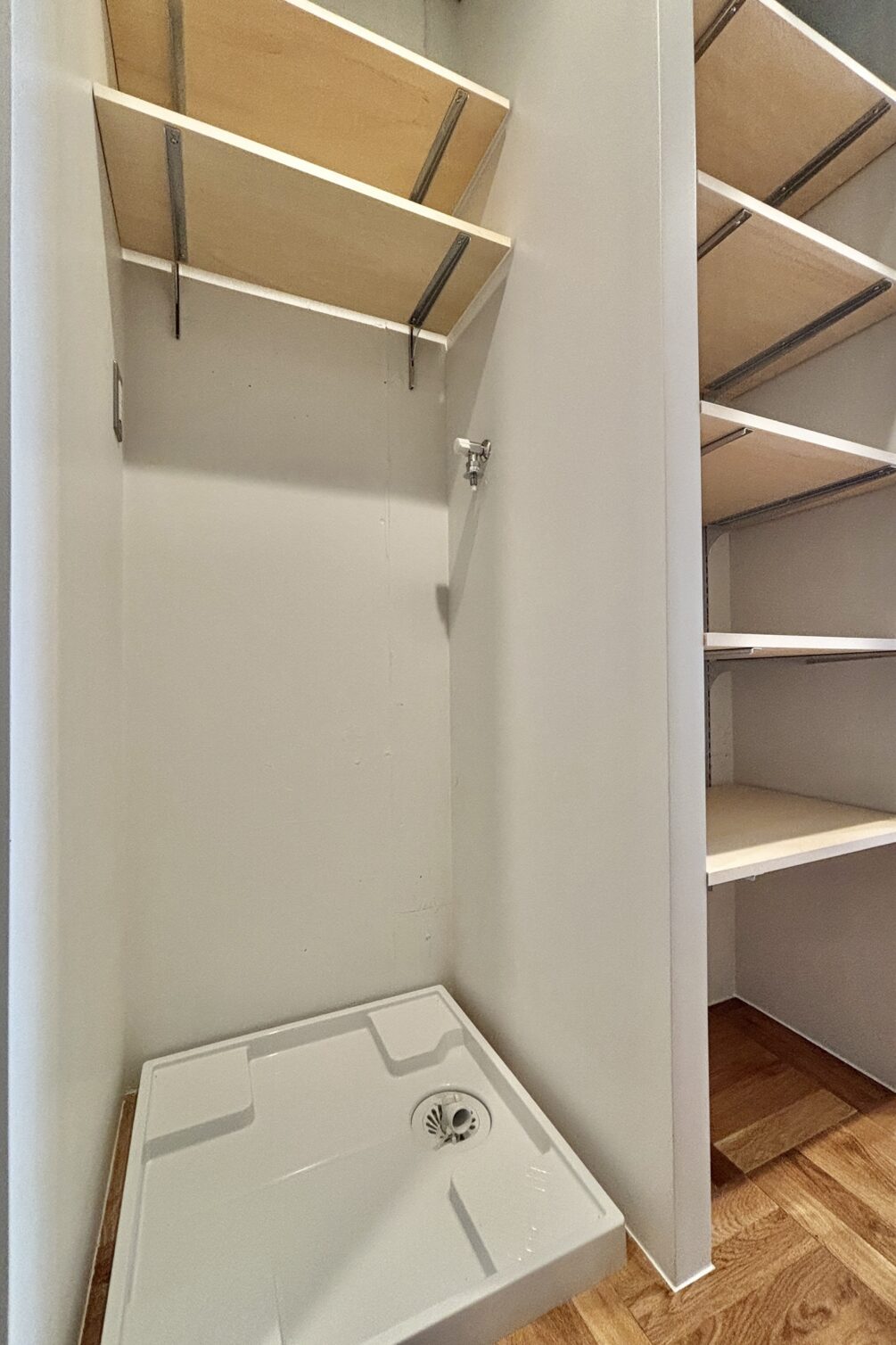 可動棚を多く設置しており、一人暮らしには十分な広さの ウォークインクローゼットがあるため、収納力がとても高いお部屋です♪ 居室は約6.3畳ですが、天井が高く、実際よりも広々とした印象です☆