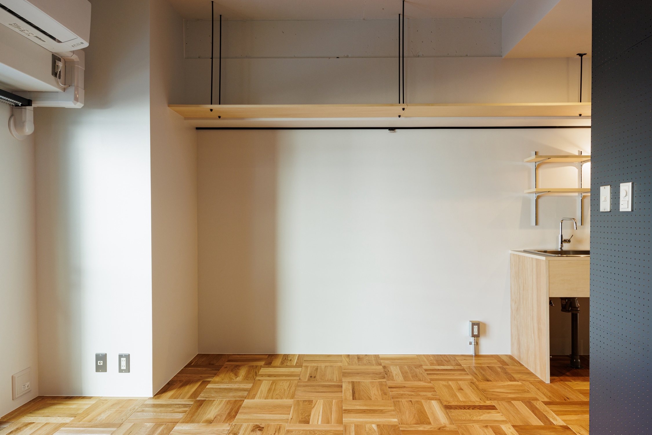 茅場町は、日本橋徒歩圏のビジネスエリアでありながら、下町らしい落ち着きも残る便利な街。東西線と日比谷線の2路線利用で都内移動がスムーズ。飲食店や老舗の専門店も多く、都会の機能性と親しみやすさを両立した住み心地の良いエリア。そんな街にいつの時代も色褪せないシンプルモダンな「Union」シリーズがあります。ブラックカラーがアクセントのお部屋で、今回の主役は壁面の有効ボード。都会的でシックな雰囲気をもたらし、お部屋全体を引き締める効果も。有効ボードにはフックを取り付けて、お気に入りのアートを飾ってみたり、見栄えの良いお掃除アイテムを吊るしてみたり。グリーンをハンギングするのもおすすめです。キッチンを廊下側に設けてなるべく居室面積を確保したお部屋は、家具配置がしやすいのが魅力的。有効ボード以外にも、随所にブラックカラーを散りばめたモダンなお部屋で、こだわりのリノベーション暮らしを始めてみませんか。