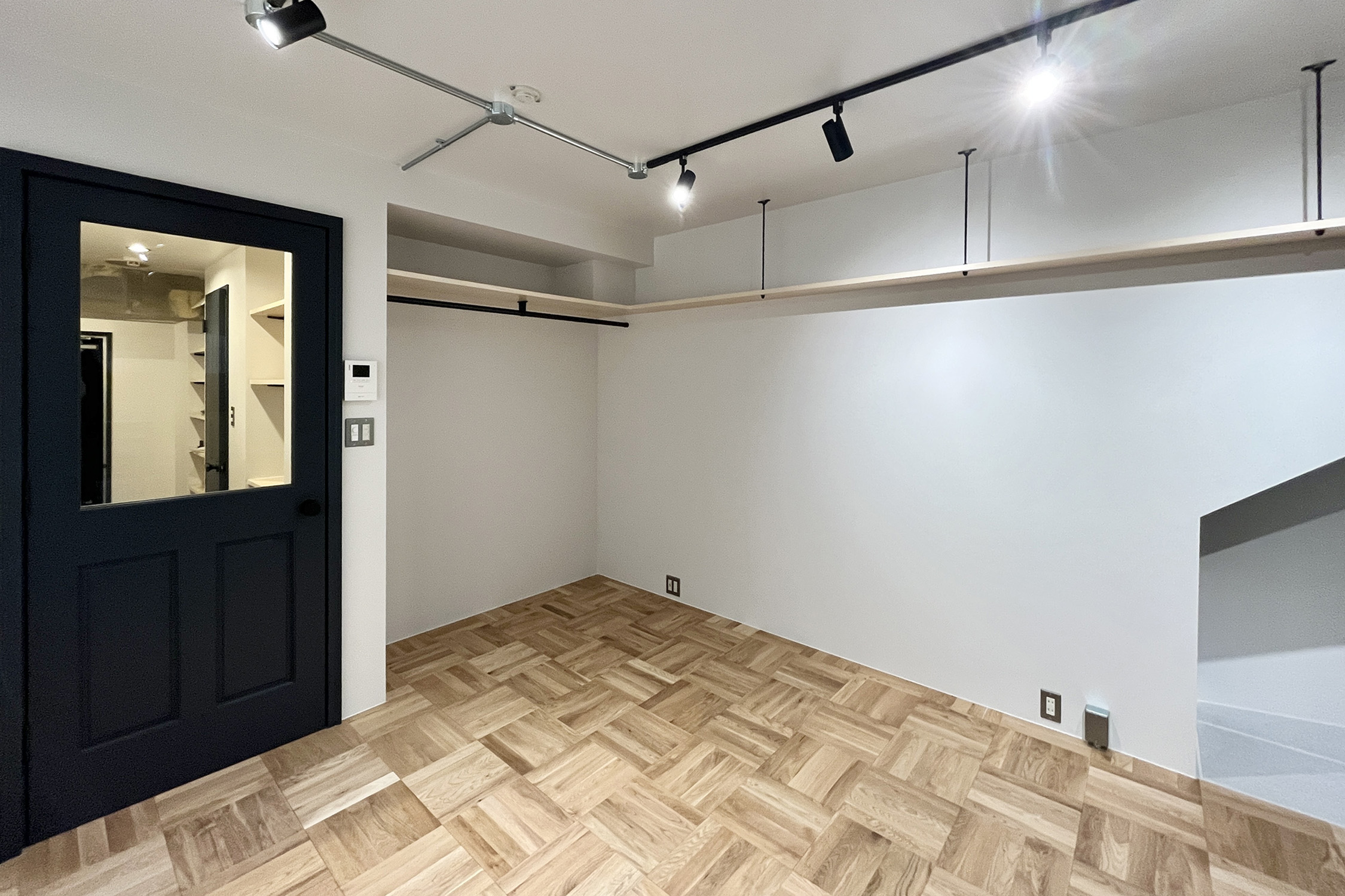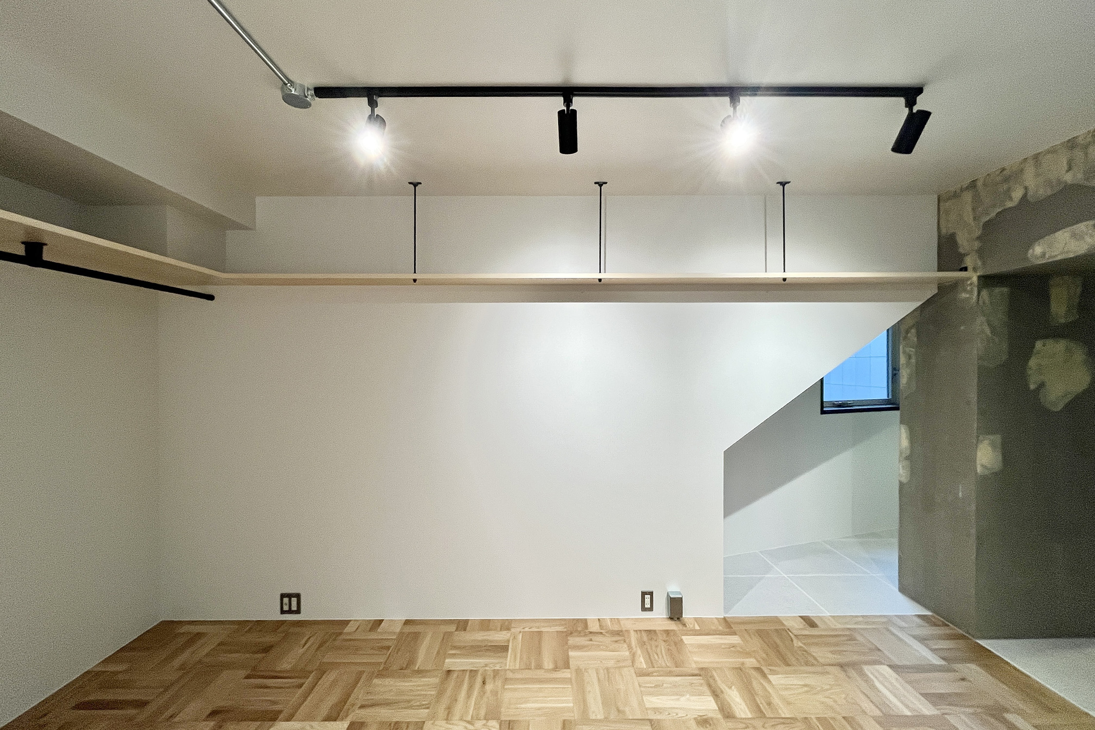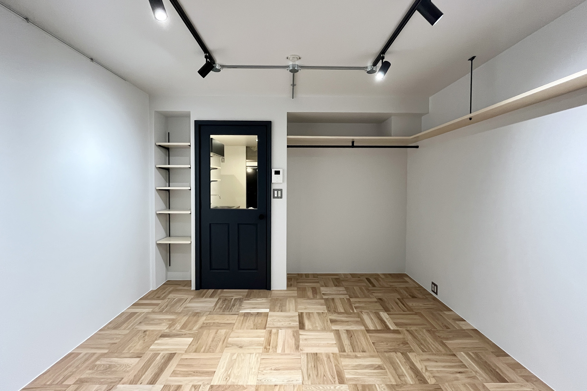 JR総武線と都営地下鉄浅草線が乗り入れる「浅草橋」駅。徒歩圏内にも複数の駅があり、利用できる路線の自由度が高く、23区内の主要エリアへもおおよそ30分圏内でアクセスできます。昔と今がほどよく交差する、古き良き東京の街・浅草橋。そんな街の空気によく似合う、リノベーションシリーズ「Union」の一室があります。変形間取りに床材の切り替えを取り入れた、時代に左右されないモダンな空間。部屋の手前に水回りとキッチンをコンパクトにまとめ、居室はゆとりある広さを確保しています。キッチン背面や水回りには可動棚を設け、使い勝手にも配慮しました。床材は、丁寧に組んだ無垢材のパーケットフローリングをメインに、窓側には石灰岩の質感を思わせるタイルを敷き分け、素材のコントラストを生み出しています。タイル張りのスペースは、光が差し込むベッドスペースとしても、インナーバルコニーのような余白としても楽しめる場所です。素材と色が織りなすモダンな佇まいは、どんなインテリアにも自然と馴染み、長く愛される普遍的なデザイン。静かな個性を宿した、Unionらしい一室に仕上がりました。