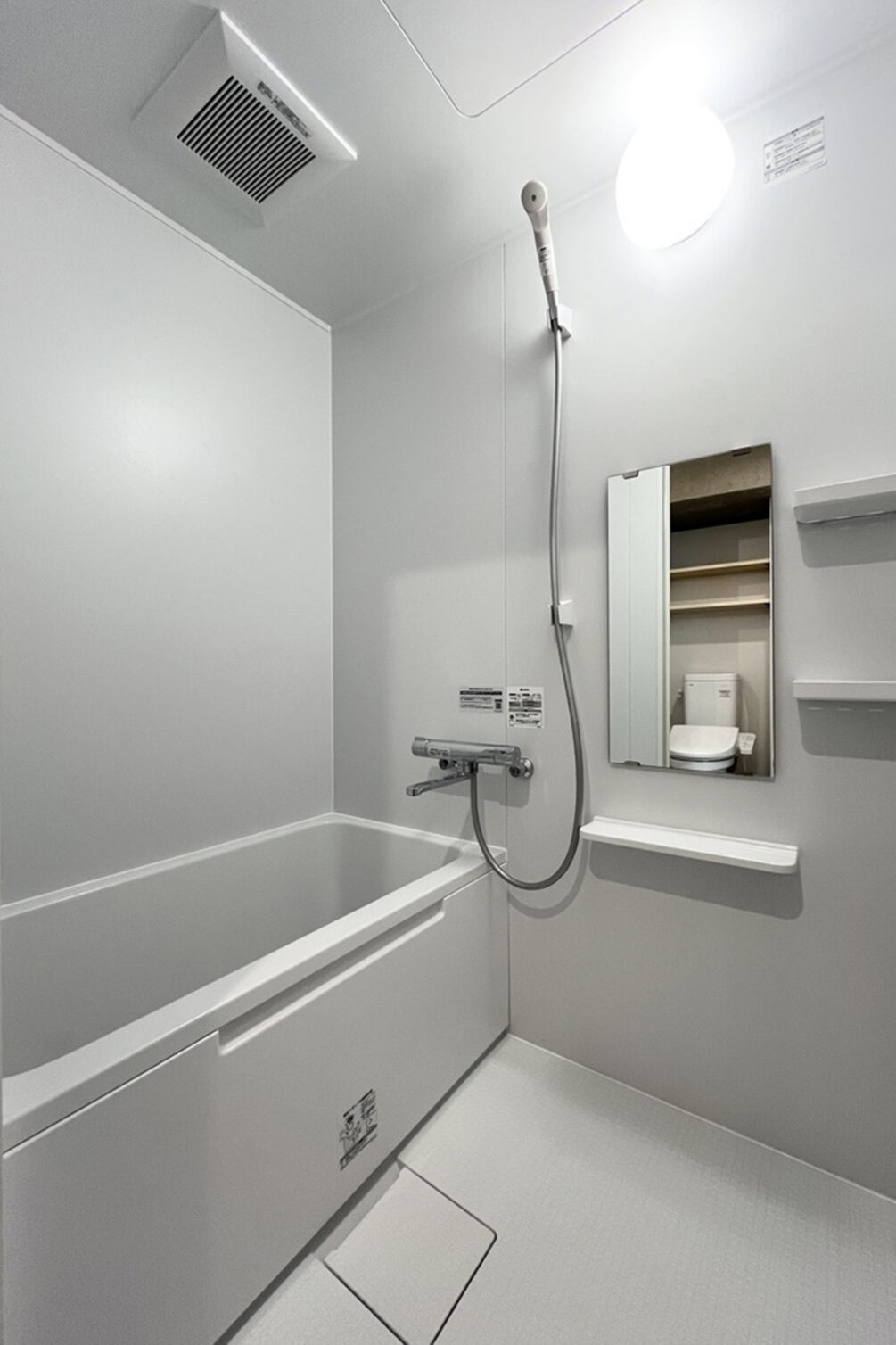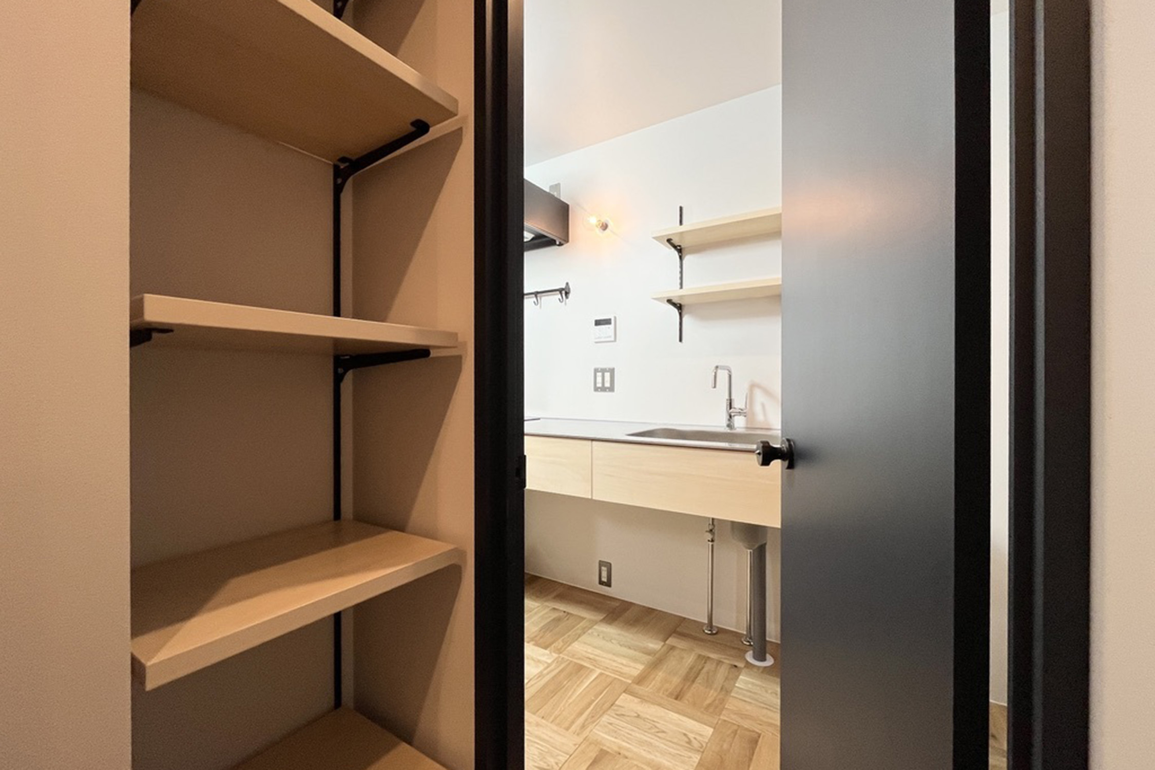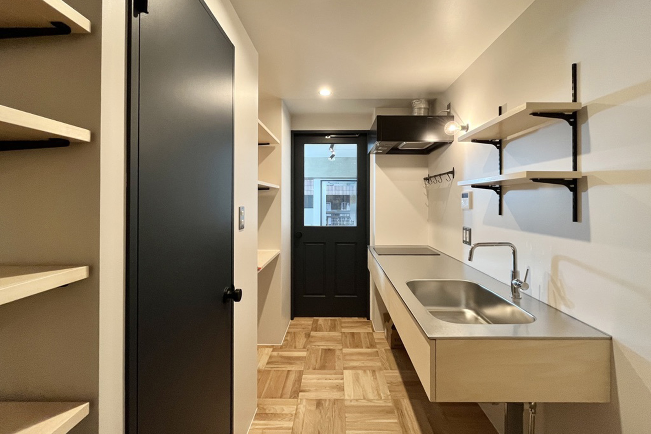 JR総武線と都営地下鉄浅草線が乗り入れる「浅草橋」駅。徒歩圏内にも複数の駅があり、利用できる路線の自由度が高く、23区内の主要エリアへもおおよそ30分圏内でアクセスできます。昔と今がほどよく交差する、古き良き東京の街・浅草橋。そんな街の空気によく似合う、リノベーションシリーズ「Union」の一室があります。変形間取りに床材の切り替えを取り入れた、時代に左右されないモダンな空間。部屋の手前に水回りとキッチンをコンパクトにまとめ、居室はゆとりある広さを確保しています。キッチン背面や水回りには可動棚を設け、使い勝手にも配慮しました。床材は、丁寧に組んだ無垢材のパーケットフローリングをメインに、窓側には石灰岩の質感を思わせるタイルを敷き分け、素材のコントラストを生み出しています。タイル張りのスペースは、光が差し込むベッドスペースとしても、インナーバルコニーのような余白としても楽しめる場所です。素材と色が織りなすモダンな佇まいは、どんなインテリアにも自然と馴染み、長く愛される普遍的なデザイン。静かな個性を宿した、Unionらしい一室に仕上がりました。