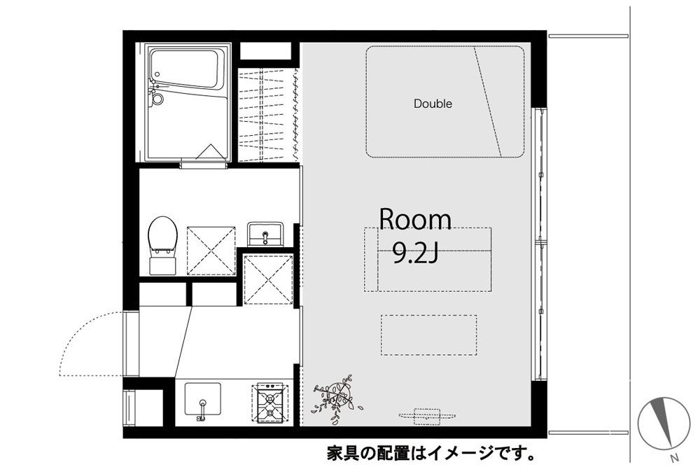 ひと味違う“侘び寂び”を楽しめるリノベーション賃貸「Wasabi」。肌触りと香りの良い杉の無垢床、開放感あるガラスの引き戸、どこか懐かしさ漂うシェードランプなど、古きと新しきを味わえる空間です。窓に面して自然光が心地よい居室には、ダブルベッドやワイドなソファも配置可能。カーテンが取り付けられるオープン収納や脱衣室の洗面台など使い勝手も◎です。そんな「Wasabi」がある「荏原中延」のまちは、実は自由が丘や中目黒へも自転車でアクセス可能という穴場エリアです。開発もされつつどこか下町のような雰囲気も残すこの街で、和モダンな毎日を楽しんでみては?