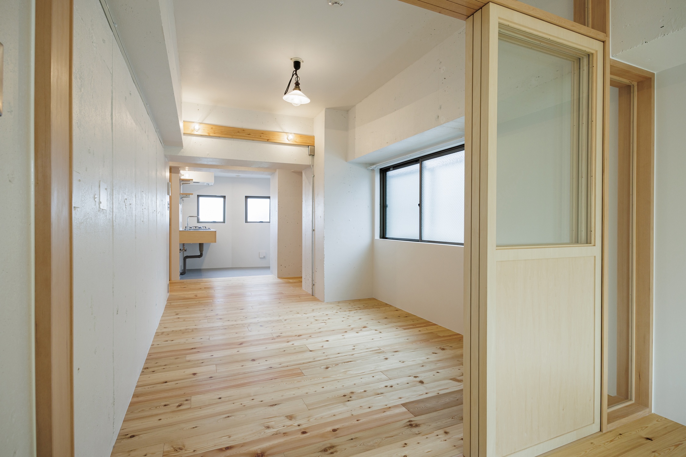 お部屋や広く、2人入居でもご相談可能です☆ 角部屋のお部屋なので、水回りやキッチン、居室にも窓があり明るい印象のお部屋です☆居室をゾーニングしている引き戸がガラス扉になっているのも、ポイントです! 無垢のぬくもりを感じながら、西荻窪での生活を楽しんでみてはいかがですか?